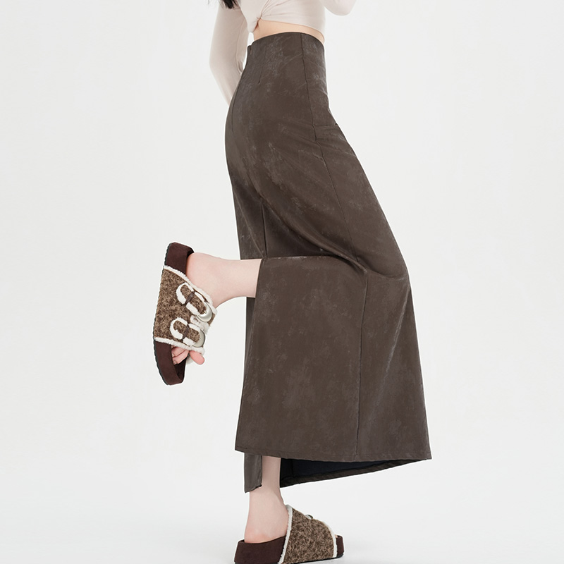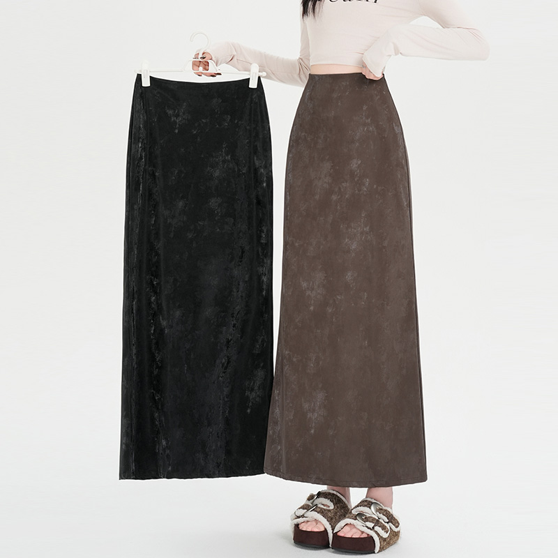 后开叉pu皮半身裙女2025秋冬a字高腰显瘦韩版中长款包臀裙子