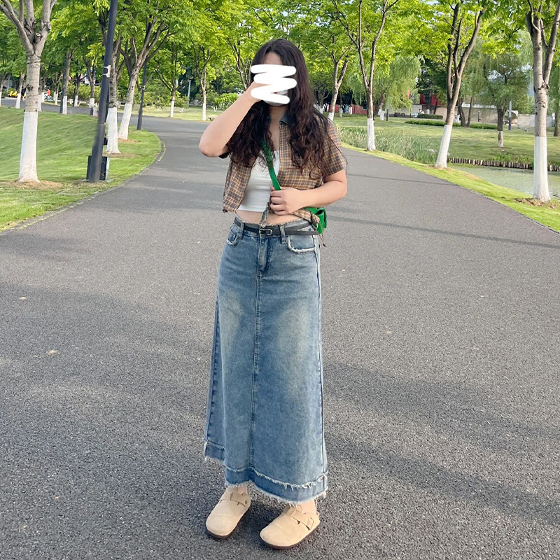胖MM特大码女装牛仔半身裙子遮肚子显瘦适合梨形身材的半裙a字裙