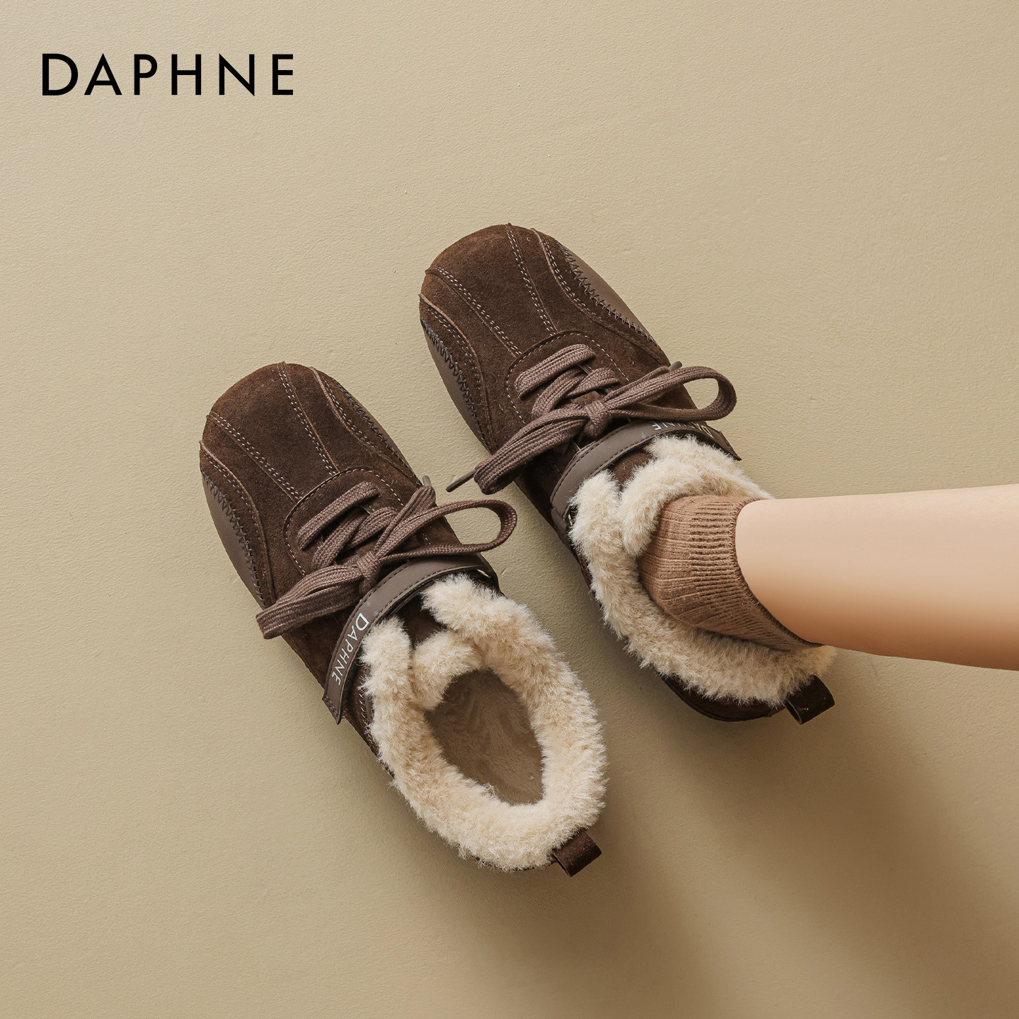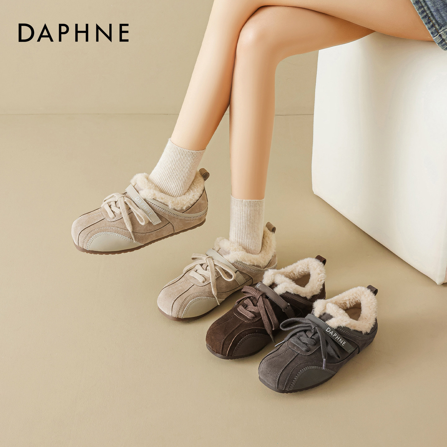 达芙妮加绒德训鞋女2025冬季新款保暖雪地棉鞋运动平底板鞋休闲鞋
