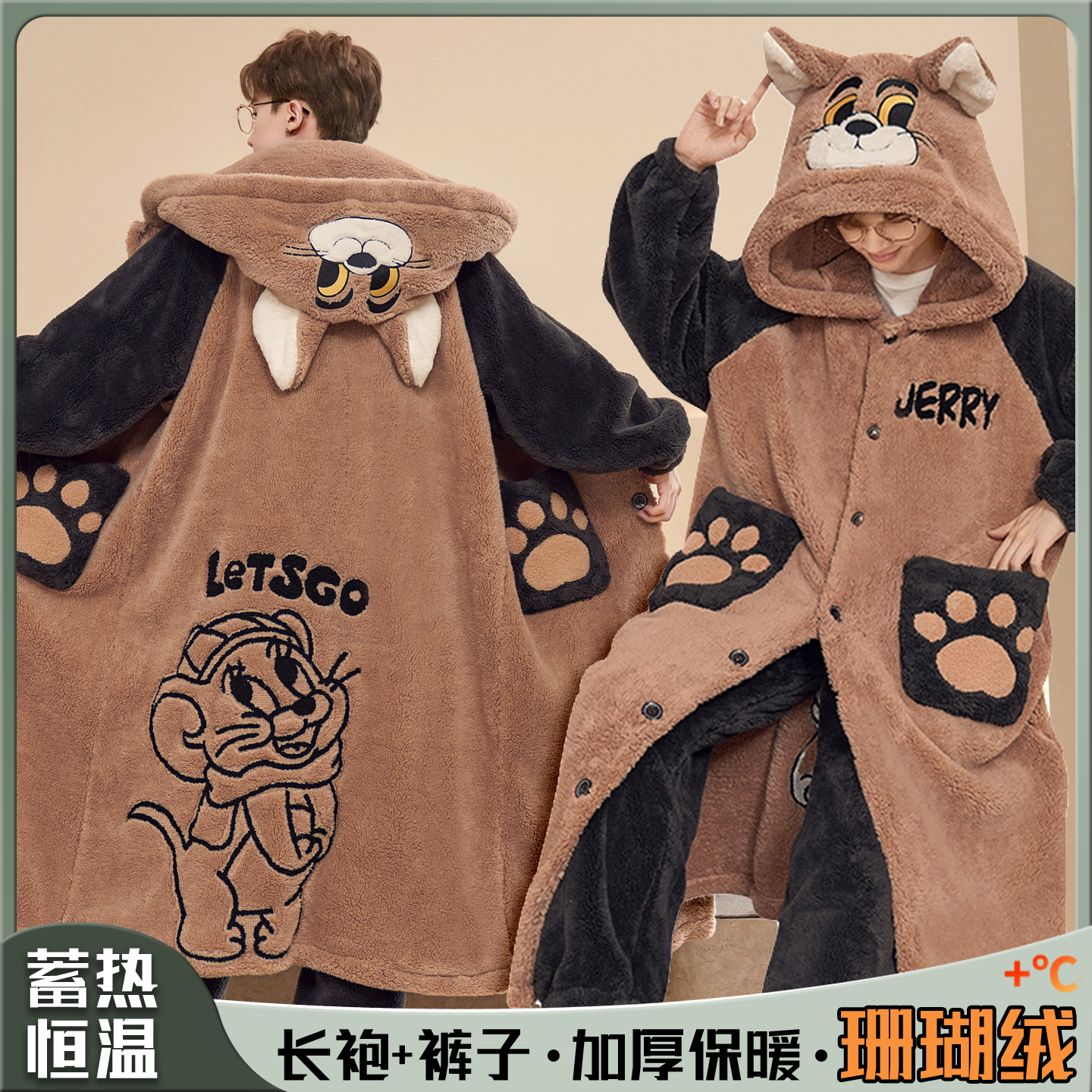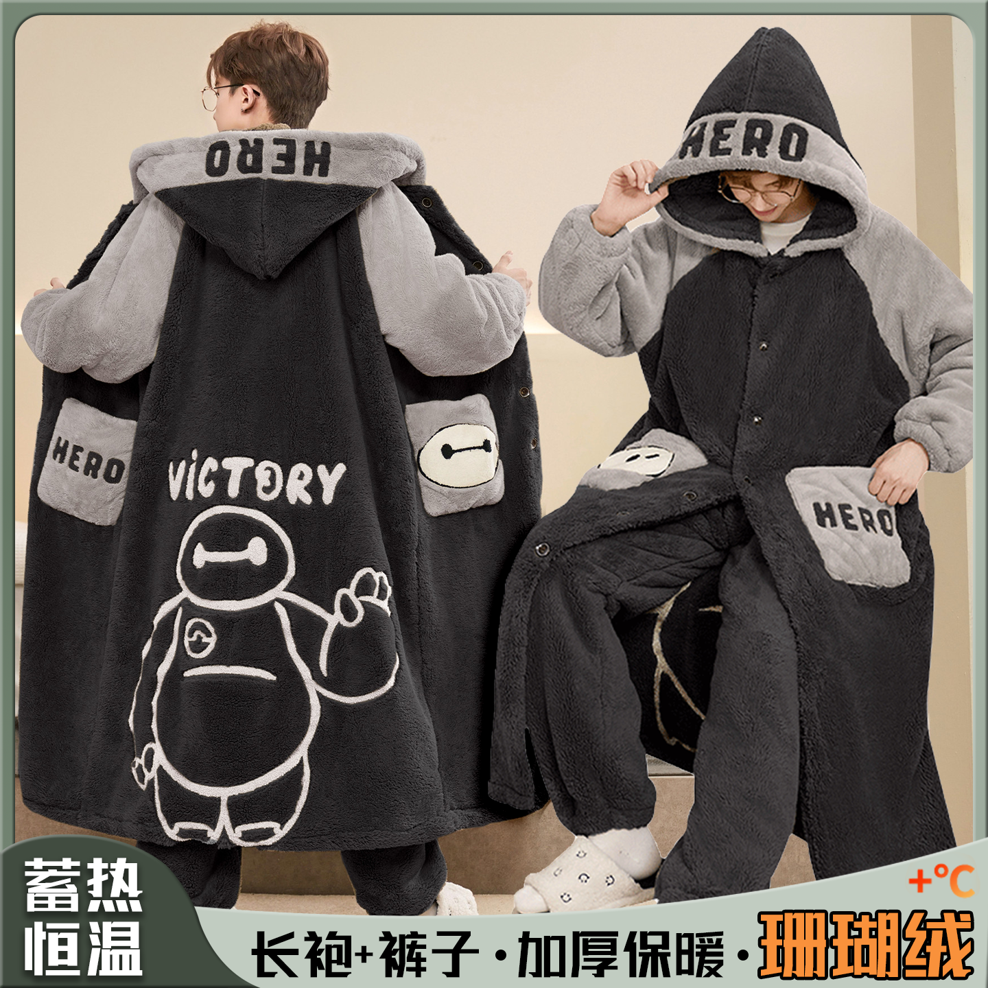 2025新款加绒加厚男款睡袍冬季珊瑚绒大码200斤睡衣卡通青年套装