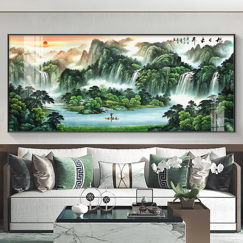 办公室装饰山水画壁画聚宝盆流水国画沙发生财中式客厅背景墙挂画