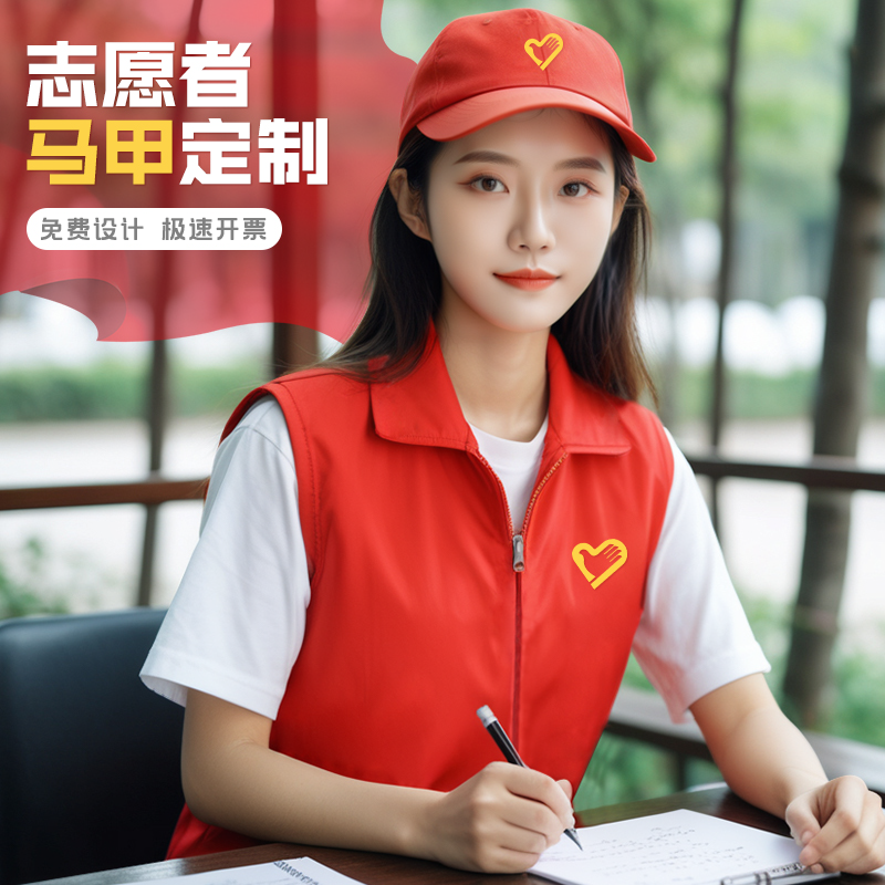 志愿者马甲工作服背心广告宣传活动公益红马夹义工服装定制印logo