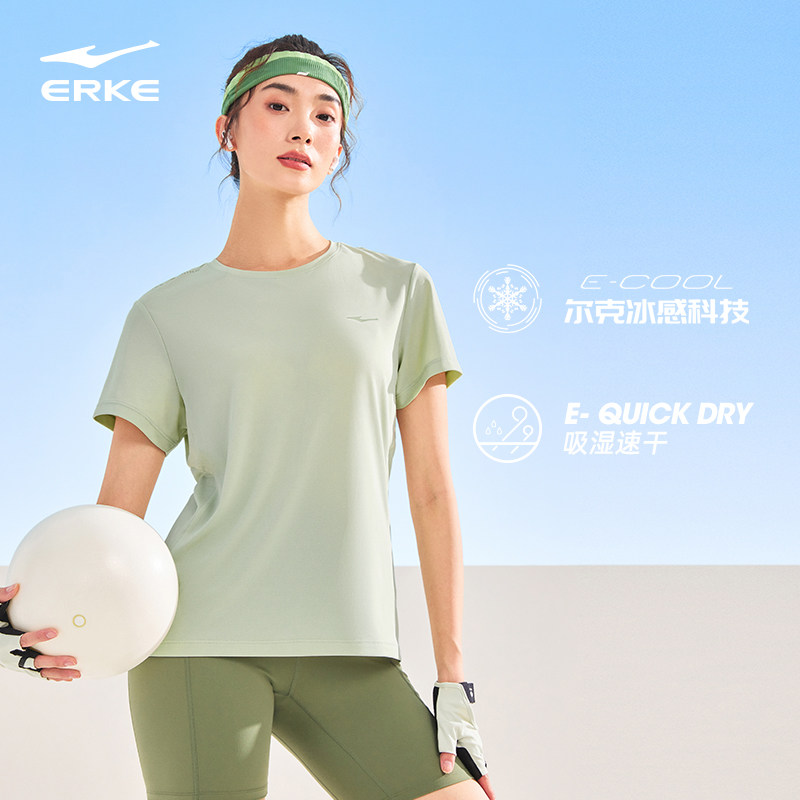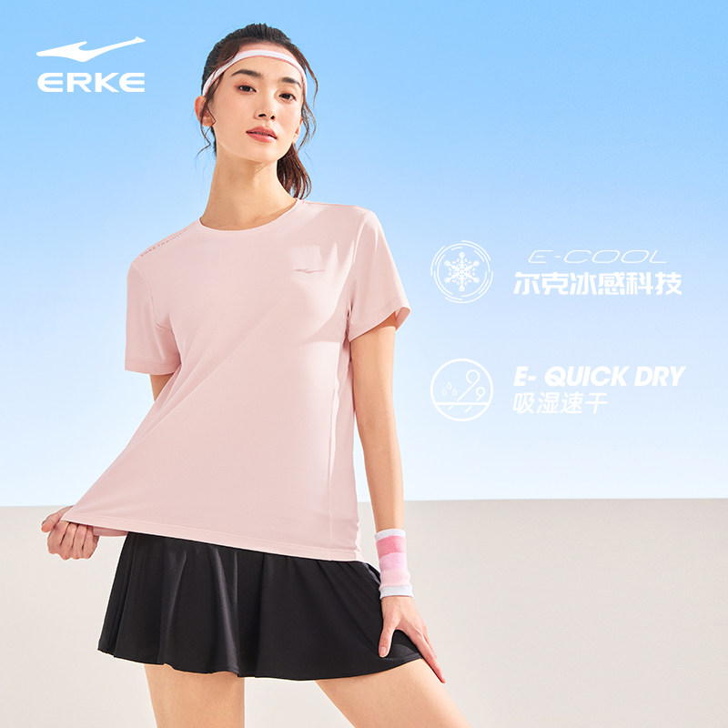 鸿星尔克短袖女2025夏季新款女士速干衣冰丝运动t恤瑜伽羽毛球服
