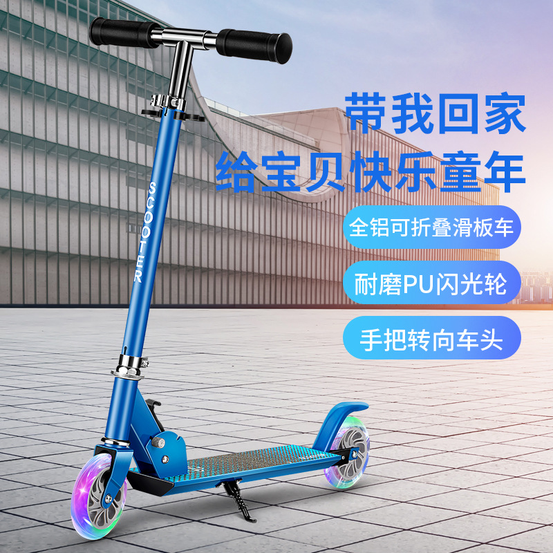 源头厂家半铝铁滑板车可折叠可调高闪轮儿童滑滑车 scooter