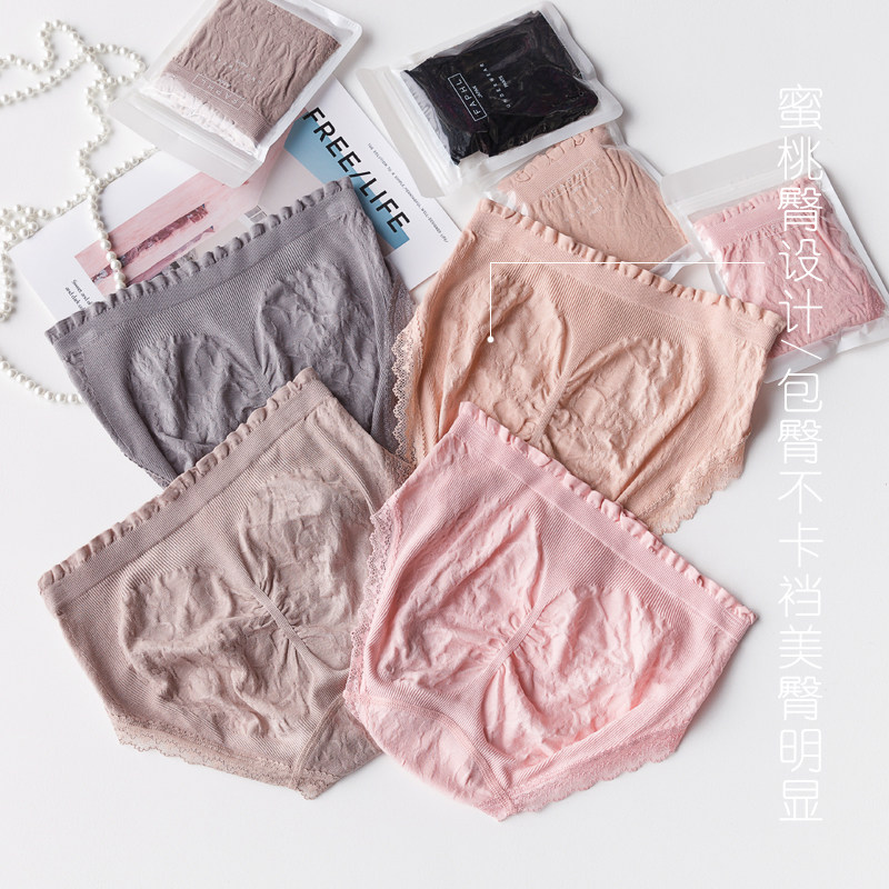 日系无缝莫代尔纯棉裆女内裤出口日本中腰蕾丝边提臀包臀三角裤头