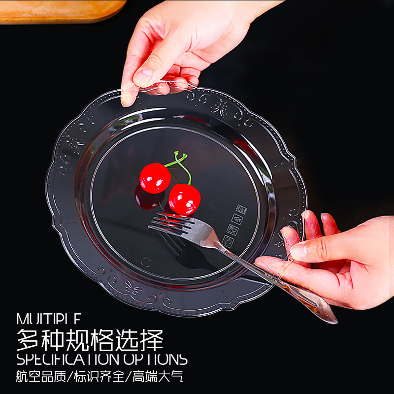 一次性航空水晶盘子塑料高档硬质户外烧烤盘家用水果盘菜盘蛋糕盘