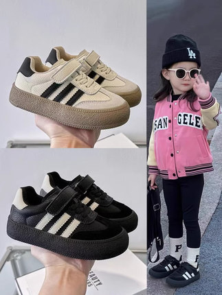 女童运动鞋真皮儿童德训鞋2024春季新款女宝宝韩版休闲鞋子男童鞋