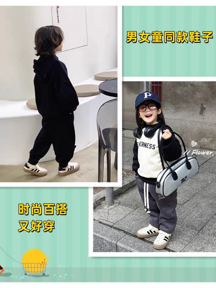 女童运动鞋真皮儿童德训鞋新款鞋