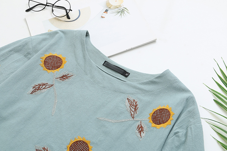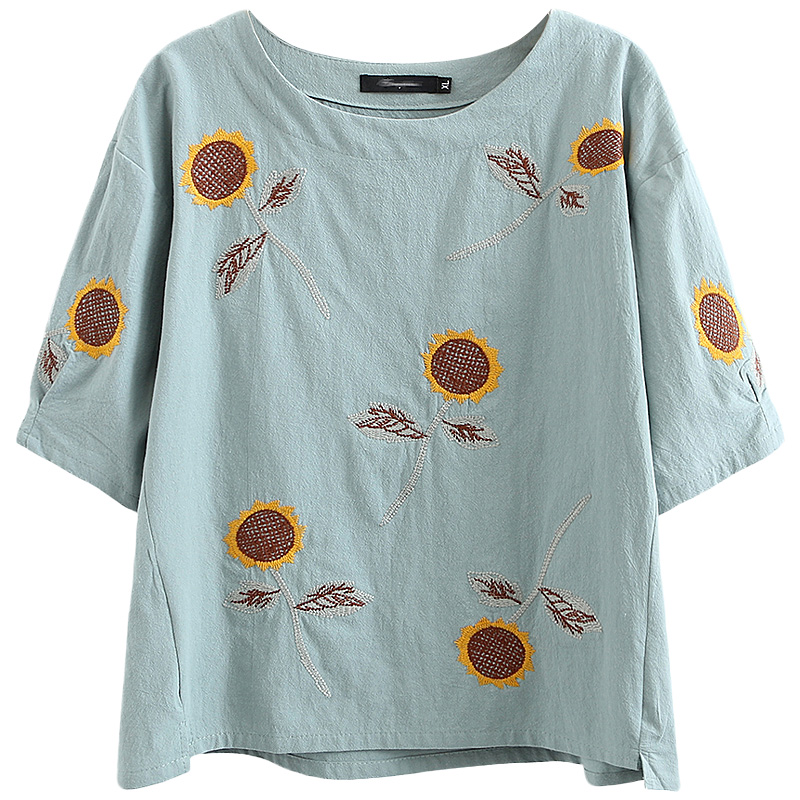 40-50岁加肥刺绣宽松短袖t恤夏装