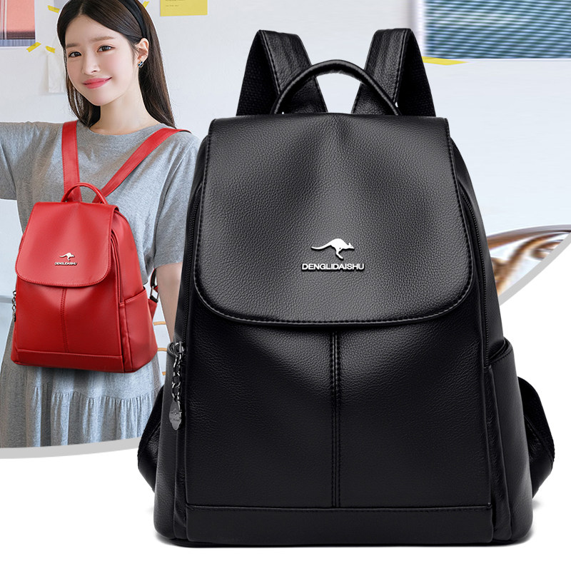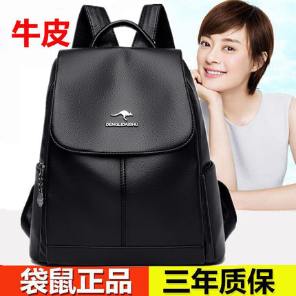 新品牛皮女双肩包2025软皮女士潮