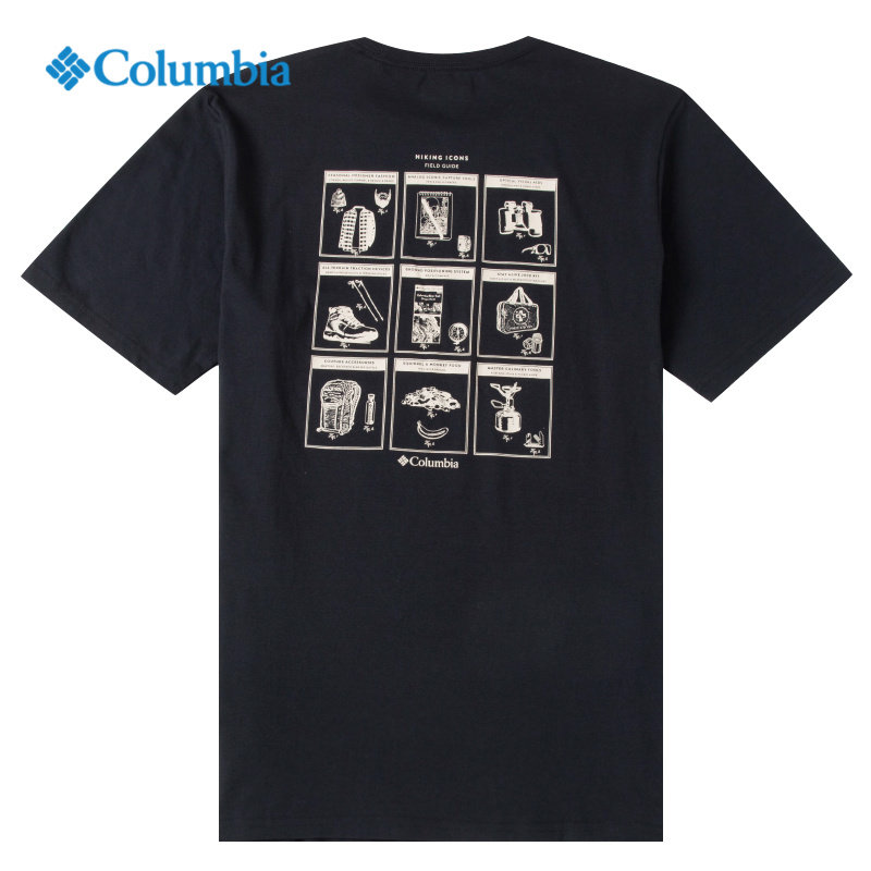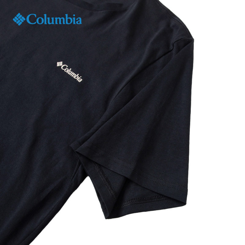 哥伦比亚官方T恤衫男冬季新款舒适透气纯棉短袖黑色圆领短款上衣