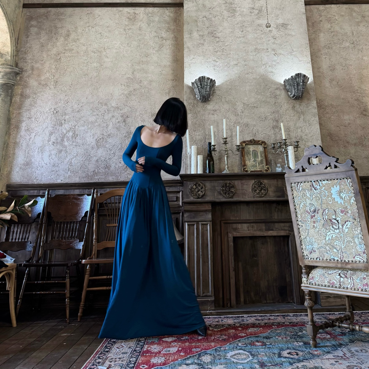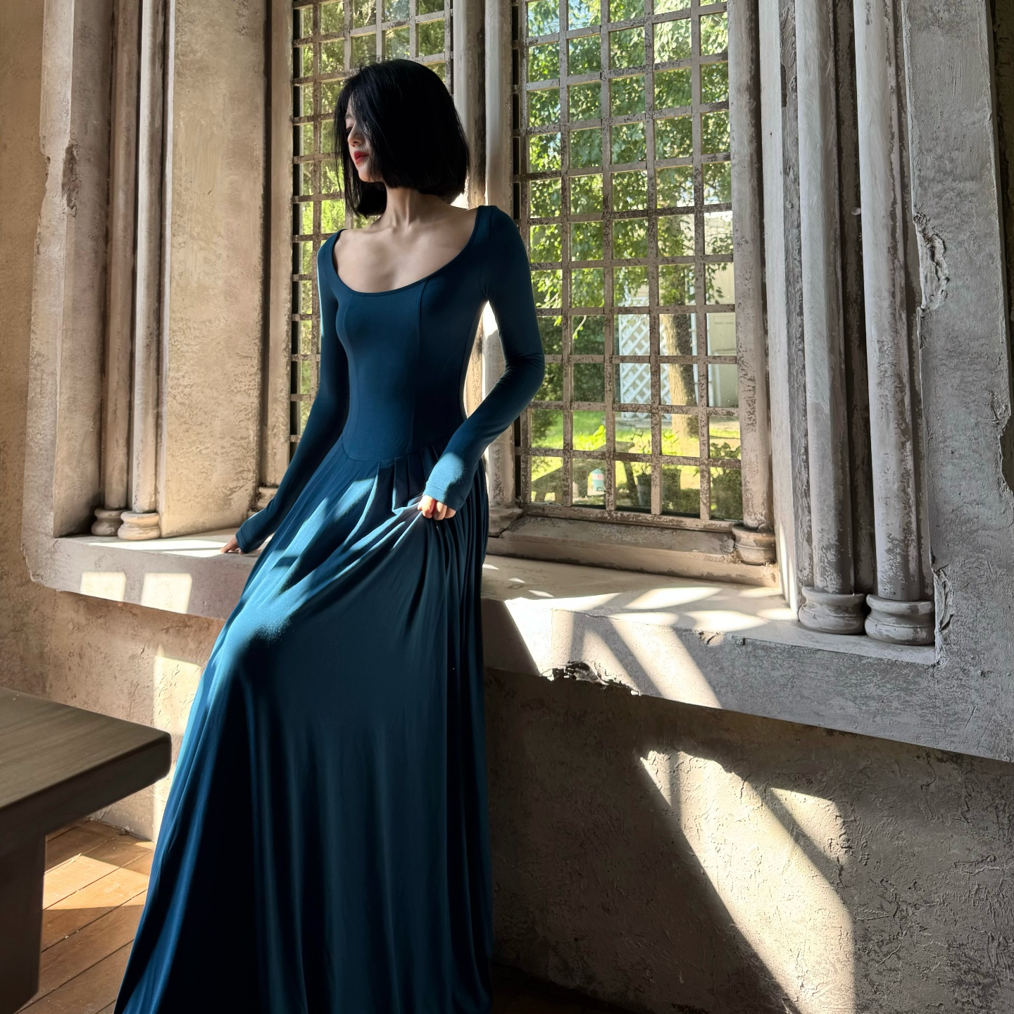 Louis Helin 南法风情小众高级感修身显瘦超长纯色长袖连衣裙