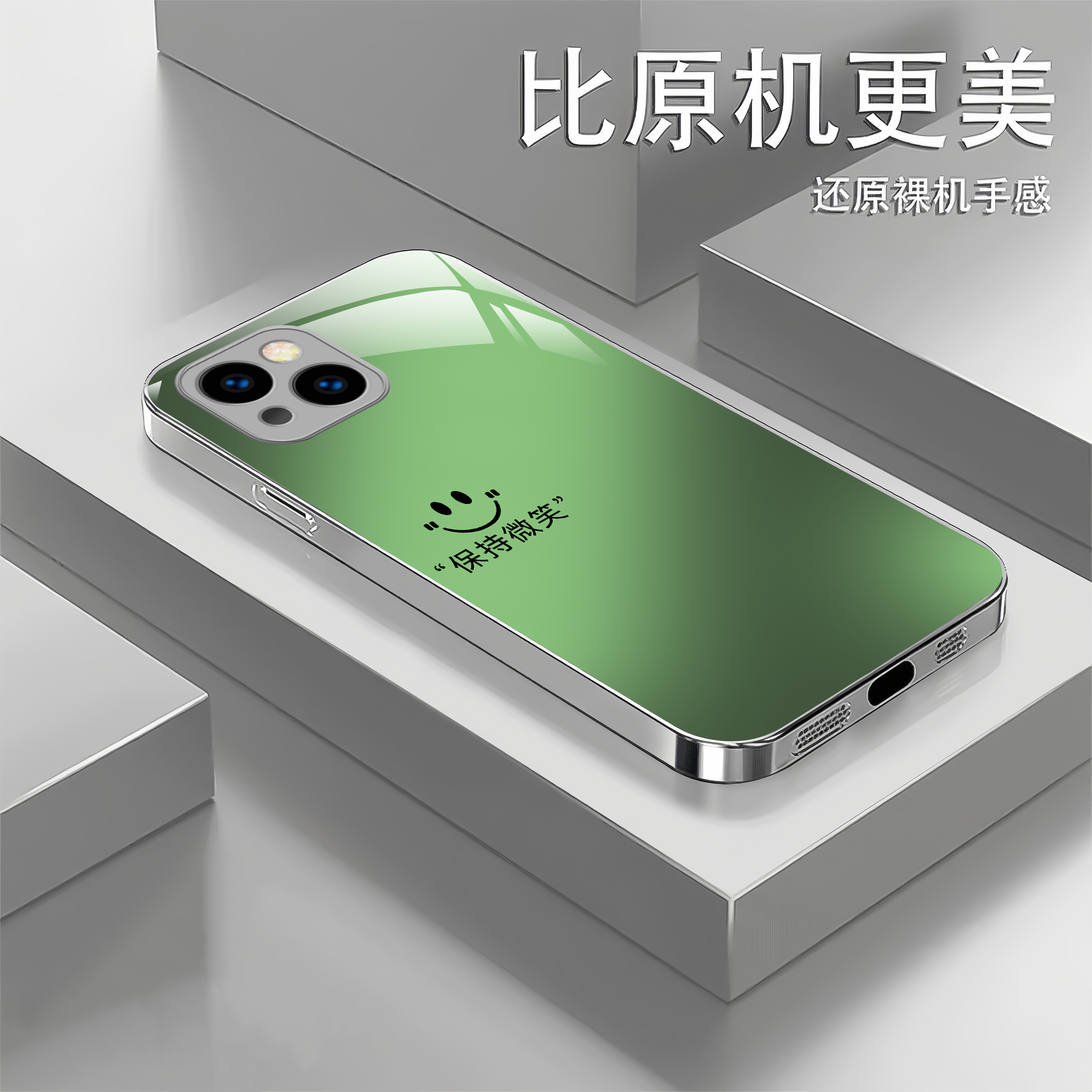 适用苹果iPhone11/12/13/14/15/16系列高档玻璃手机壳不沾指纹保持微笑