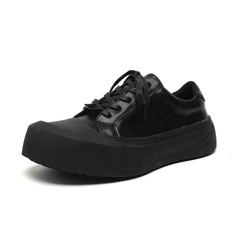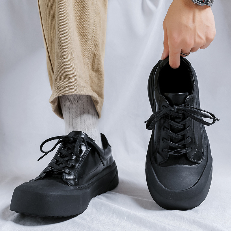 男款厚底增高韩版系带低帮休闲鞋情侣款同款通勤纯黑百搭休闲板鞋