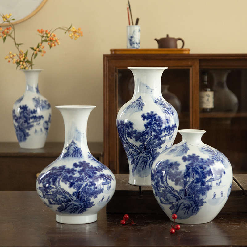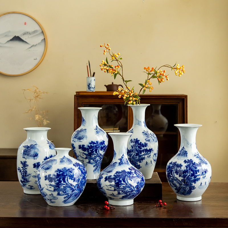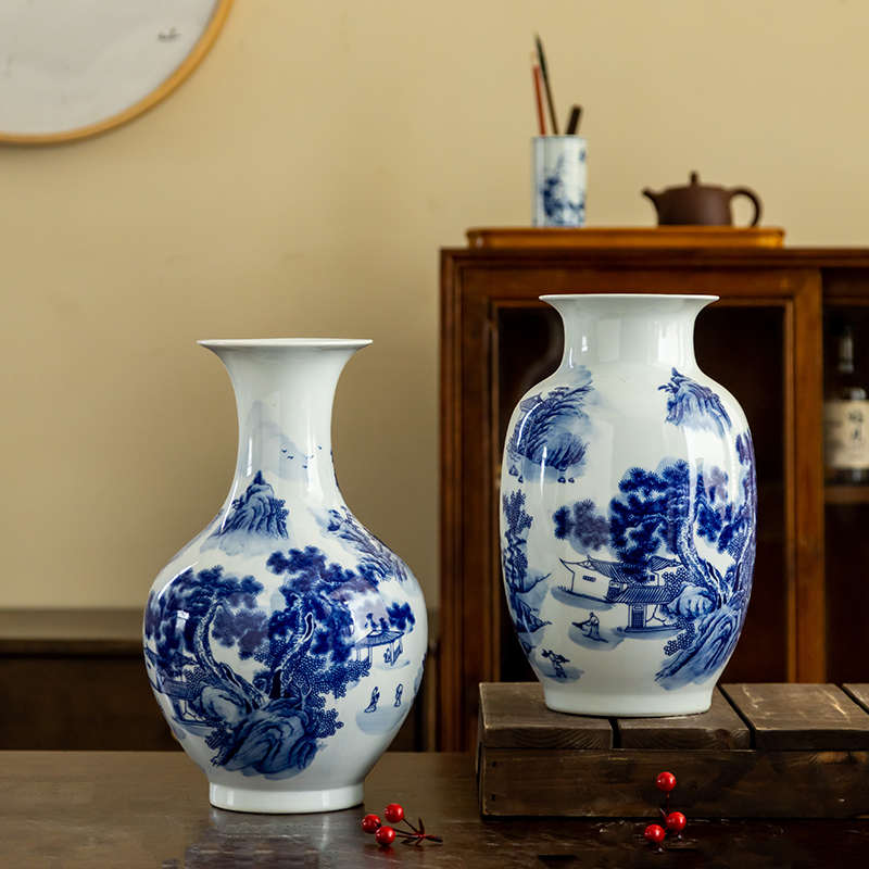 青花瓷摆件花瓶景德镇装饰品家居仿古陶瓷客厅山水陶瓷器中式插花