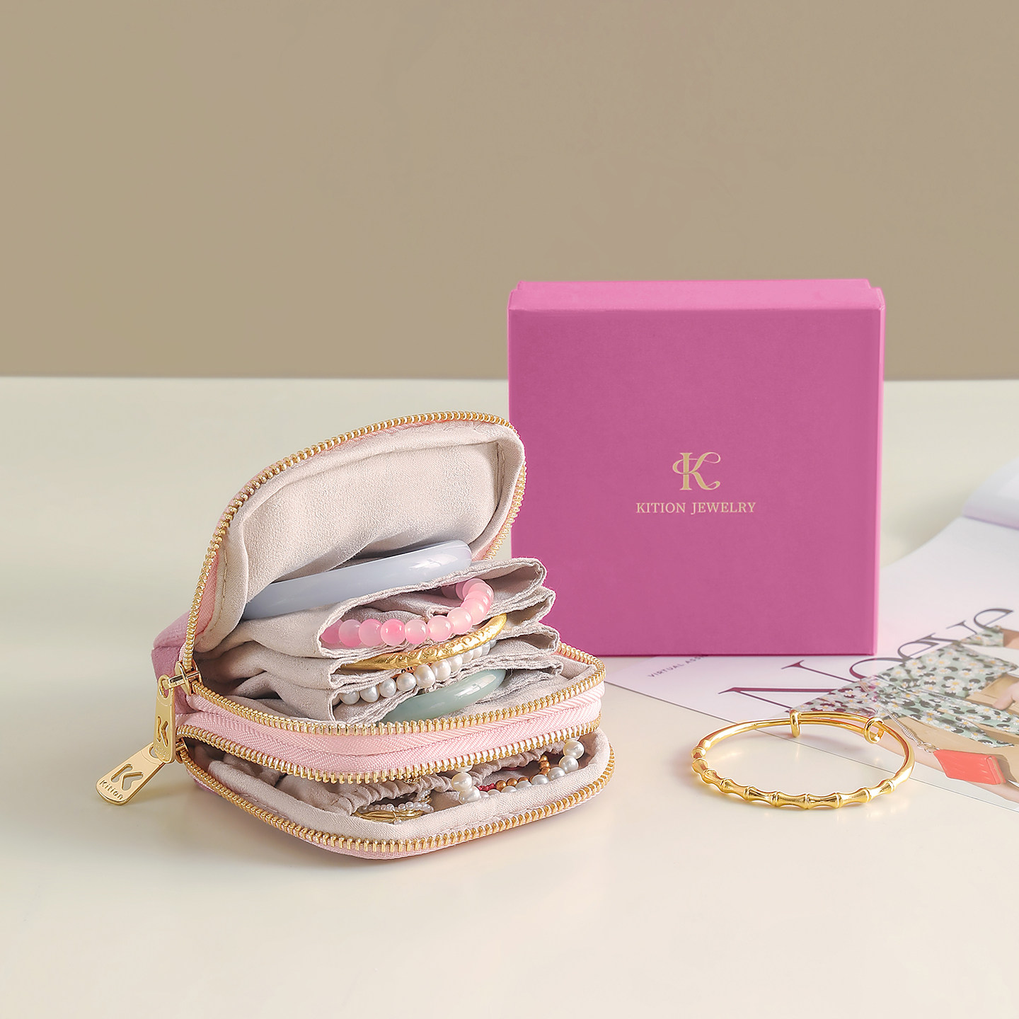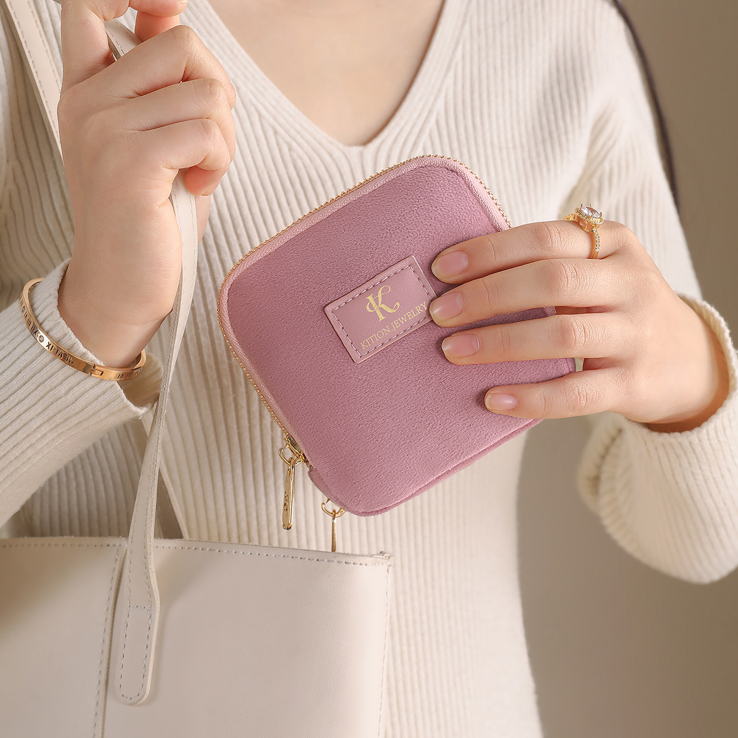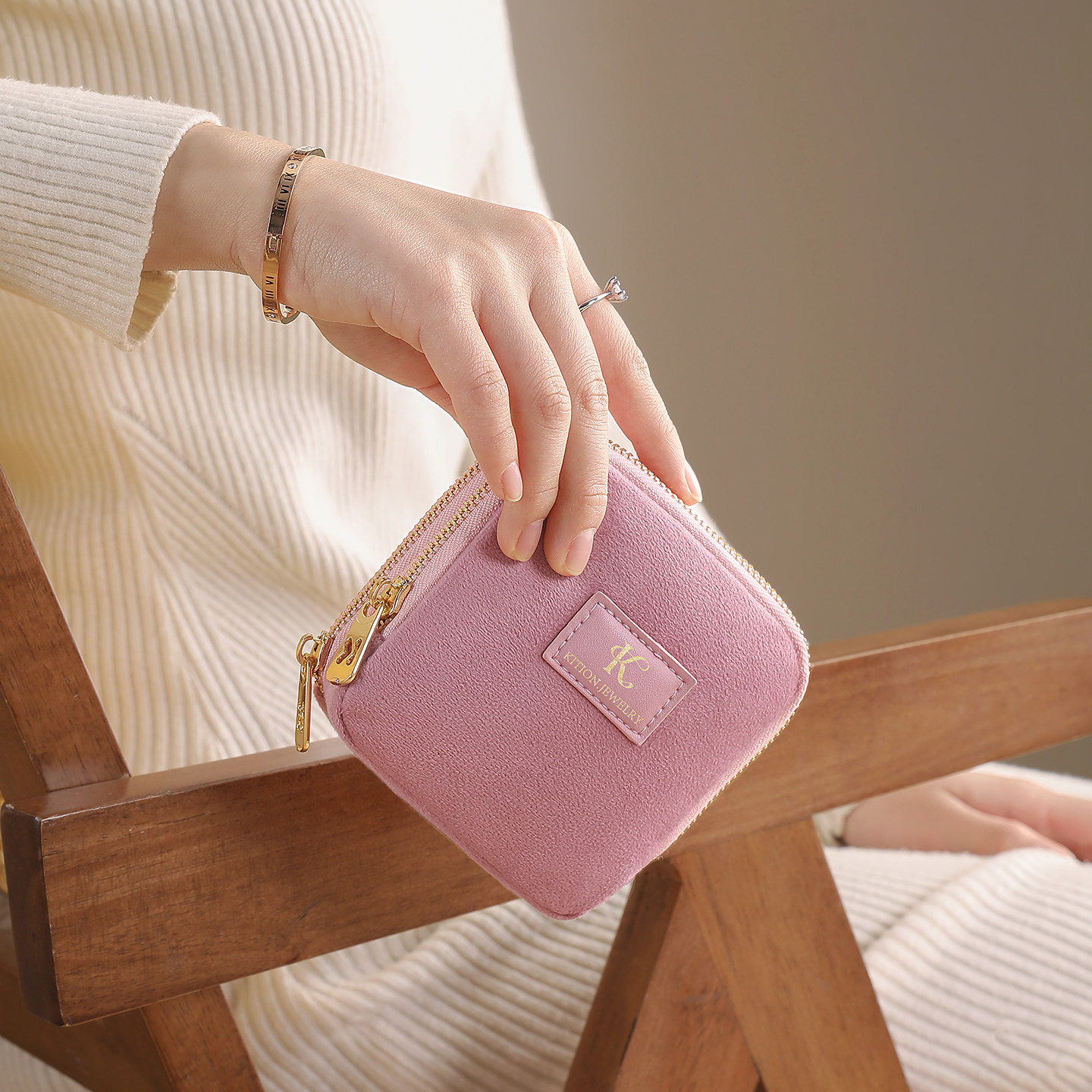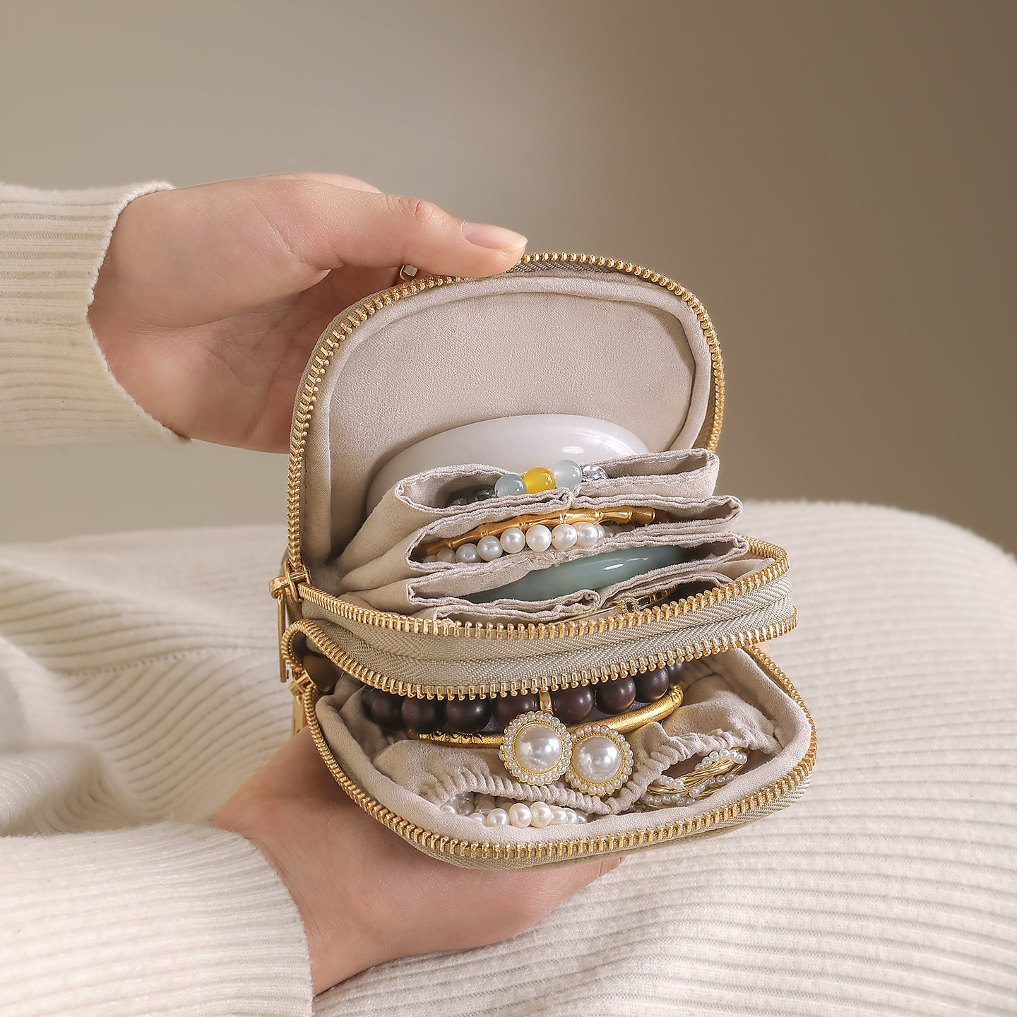 水晶绒双层首饰包便携首饰盒精致高档手串文玩迷你收纳包外出必备