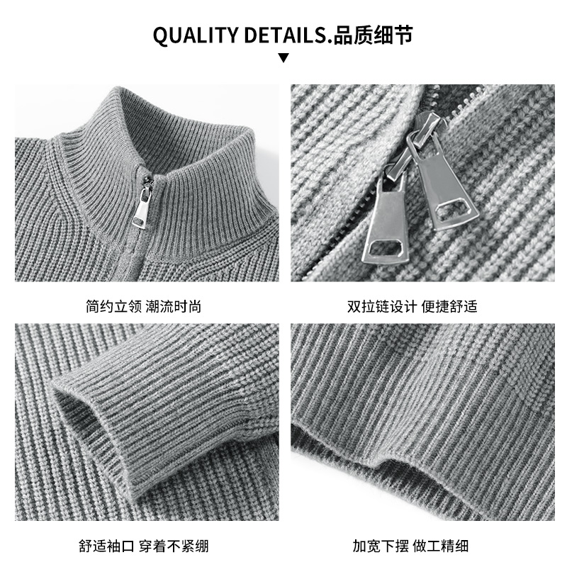 NN真维斯双开拉链针织开衫男款冬季加厚保暖毛衣外套时尚潮流百搭