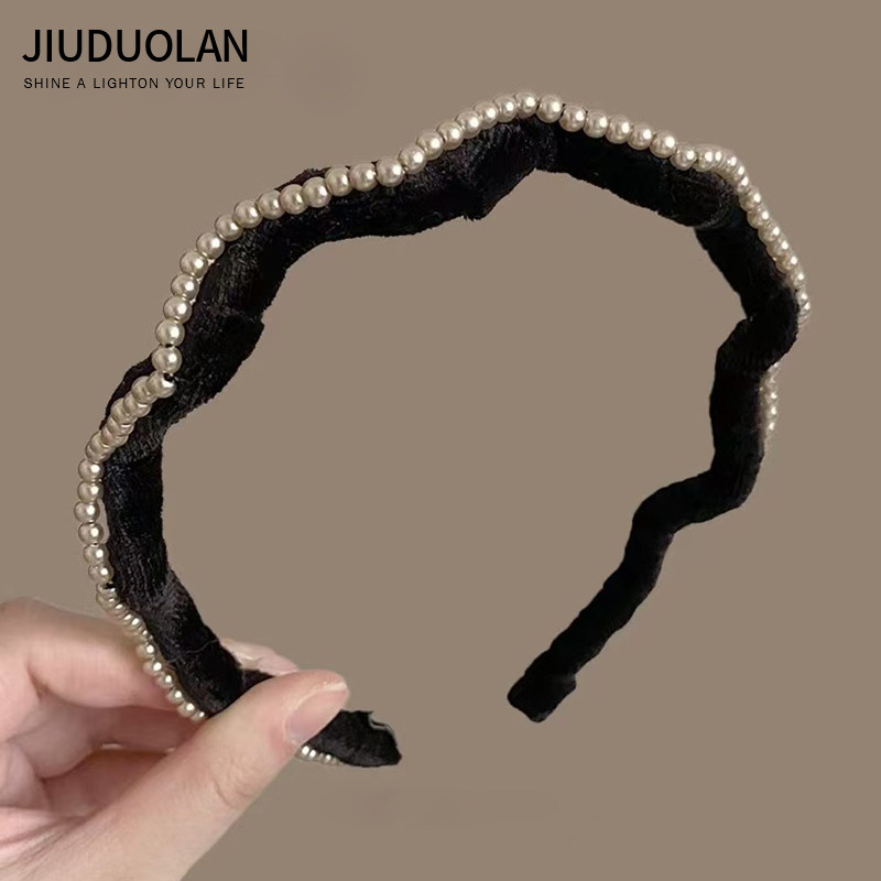 丝绒珍珠波浪发箍女2026新款外出百搭高颅顶洗脸头箍压发头饰发卡