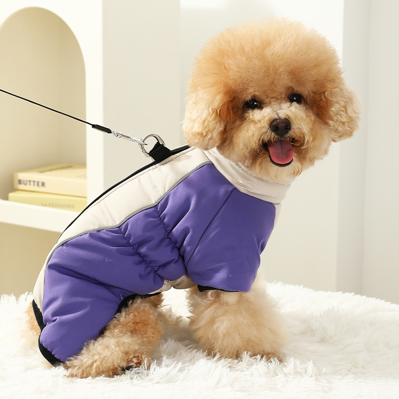 狗狗衣服冬装加绒加厚两脚衣比熊泰迪博美中小型犬可牵引绳狗棉衣