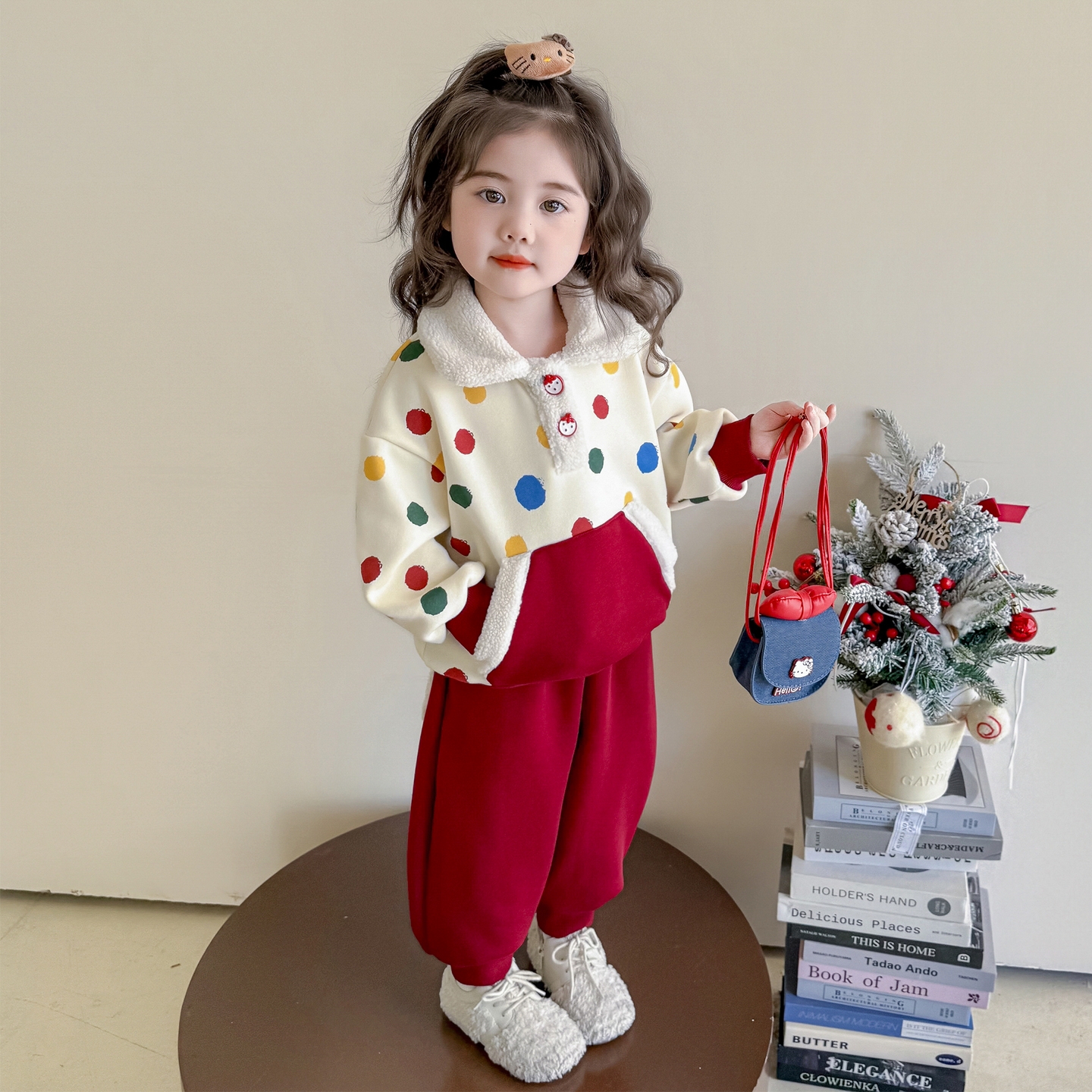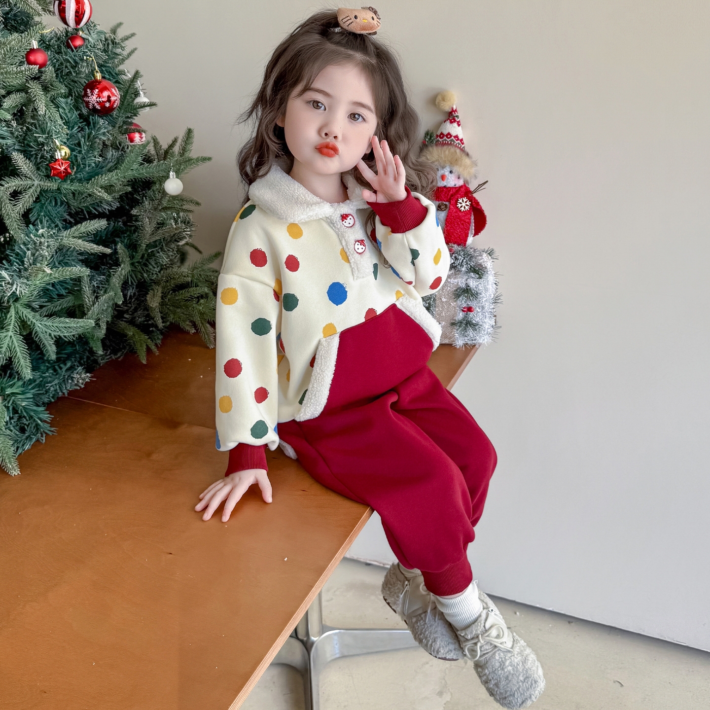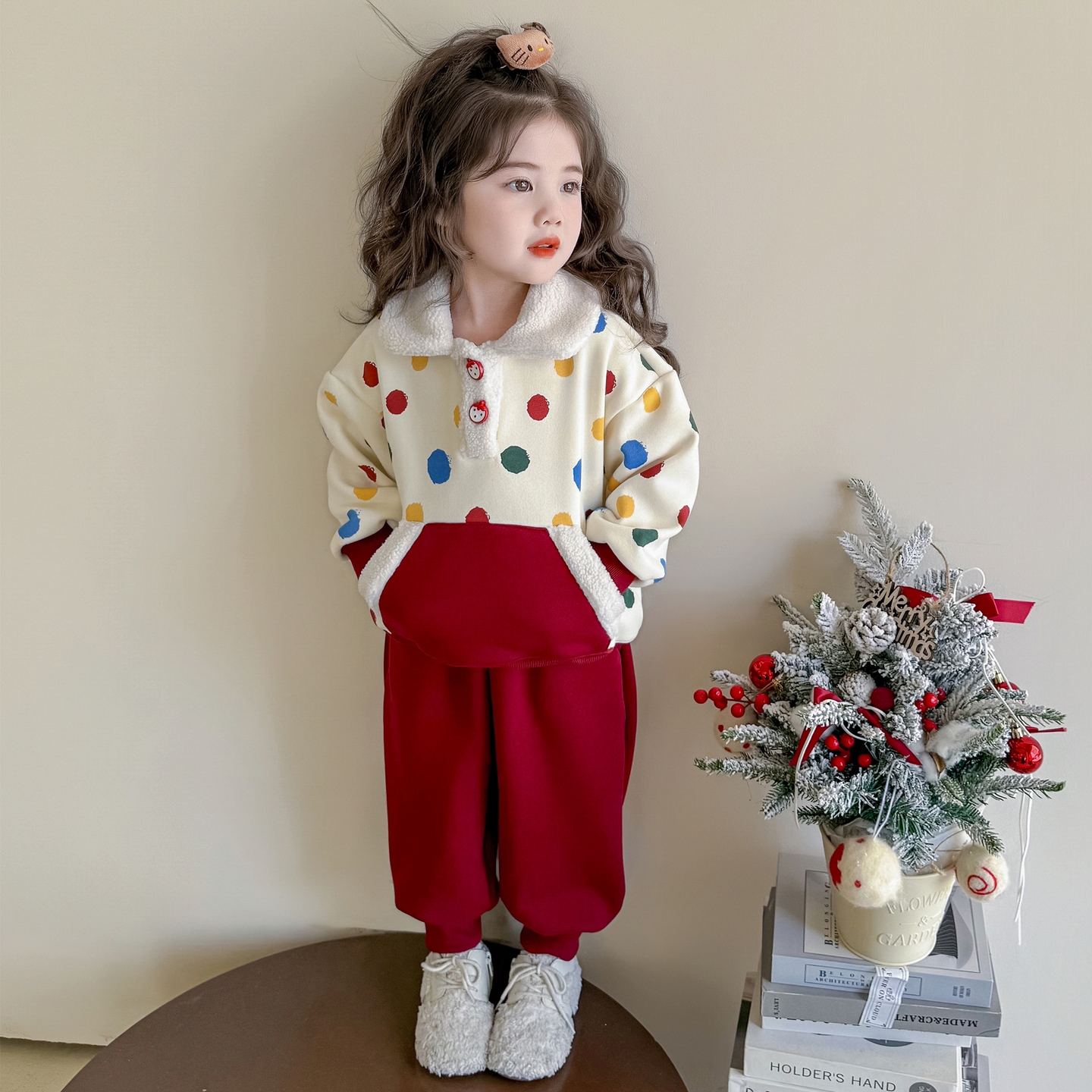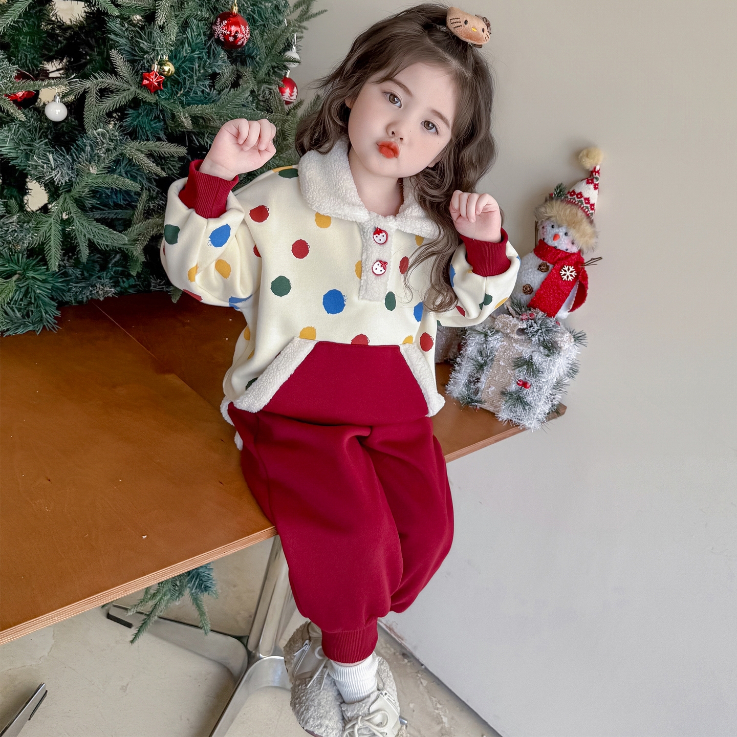 女童秋冬季加绒卫衣套装女孩宝宝洋气冬装保暖加绒加厚新款两件套