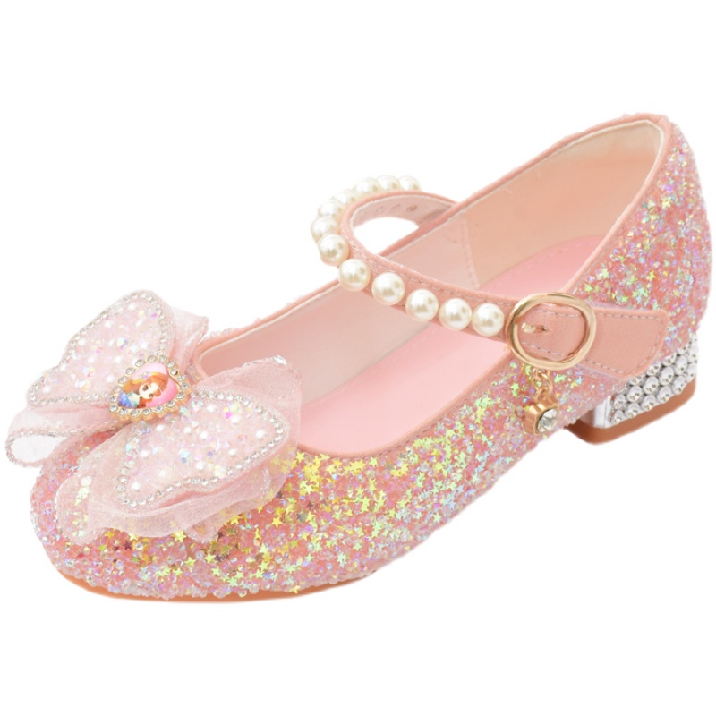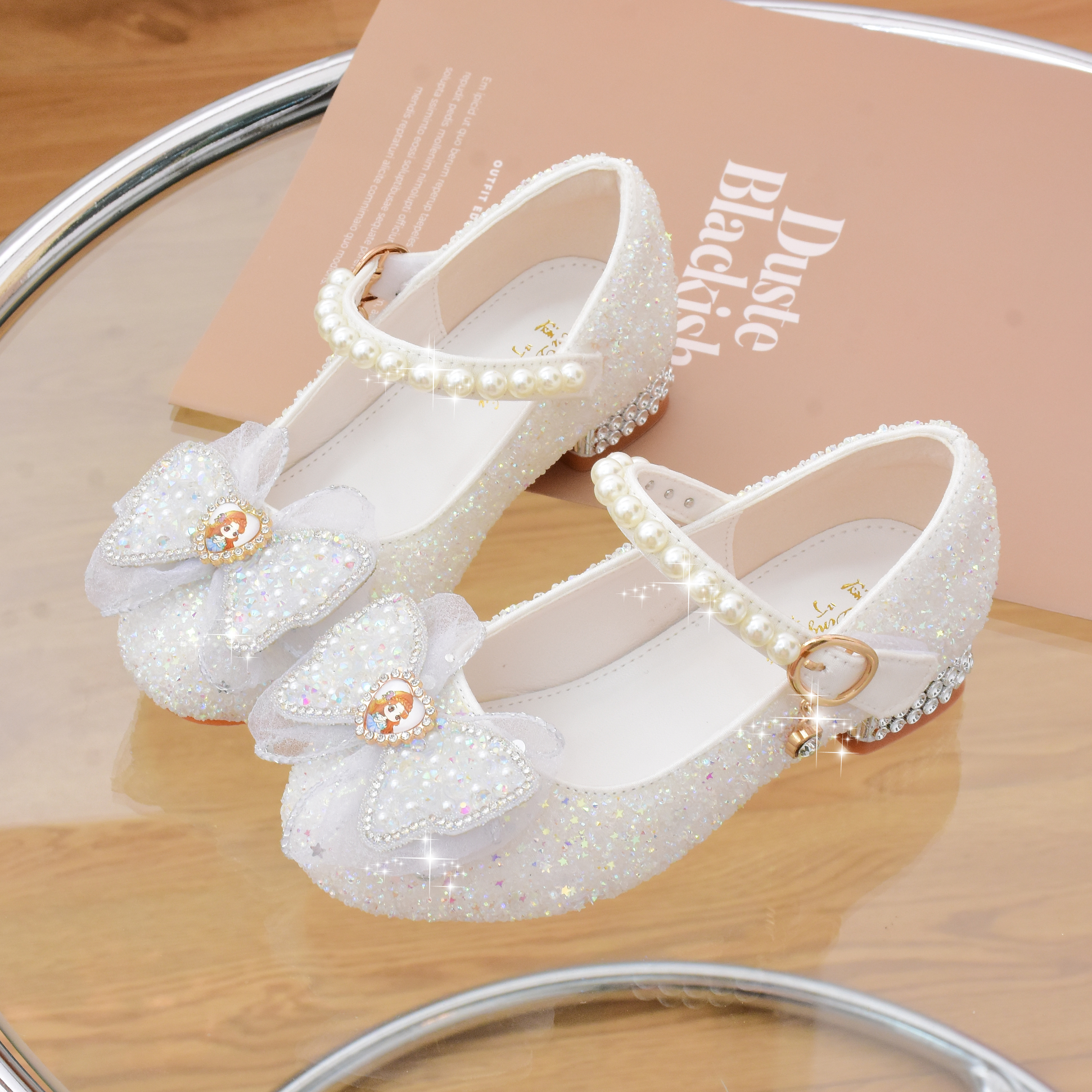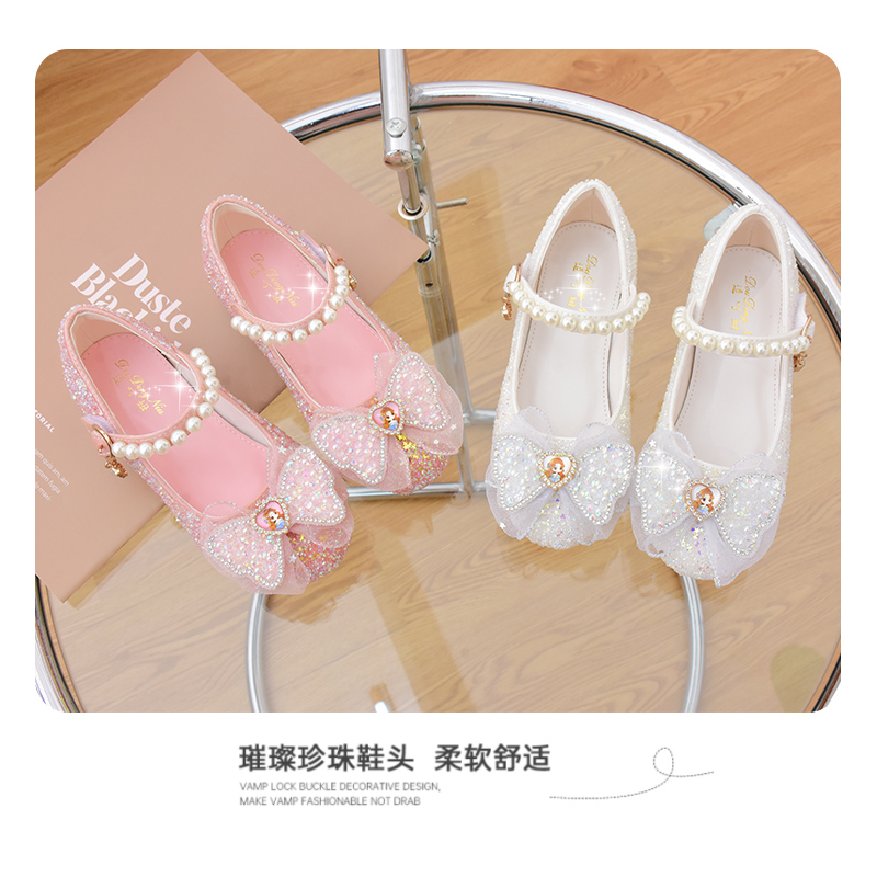 小女孩公主高跟鞋洋气白色女童皮鞋春秋季爱莎单鞋儿童走秀水晶鞋