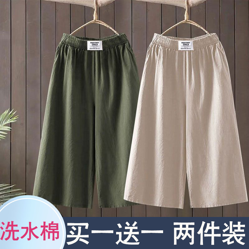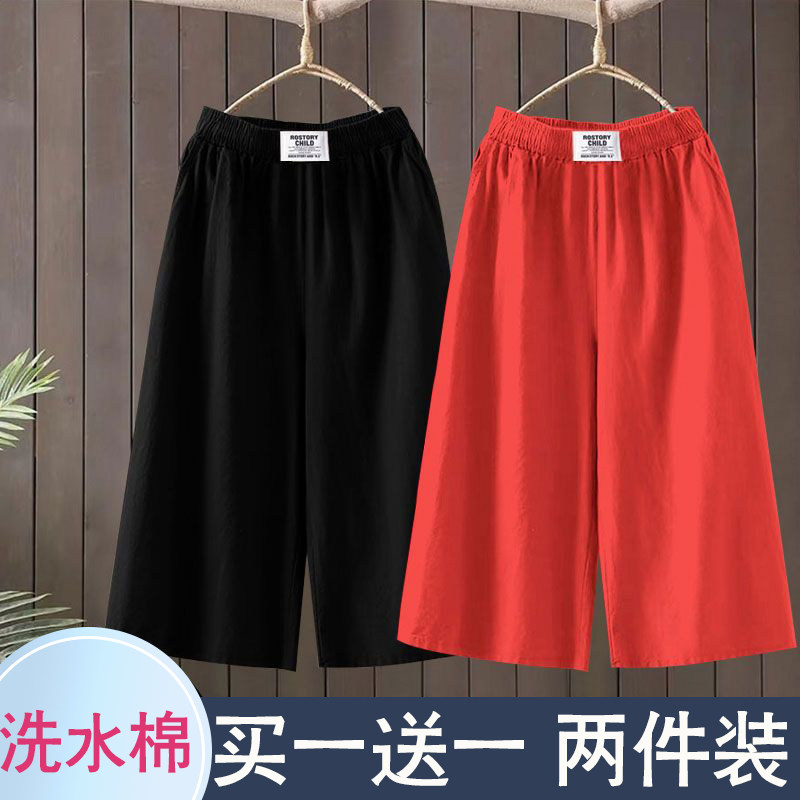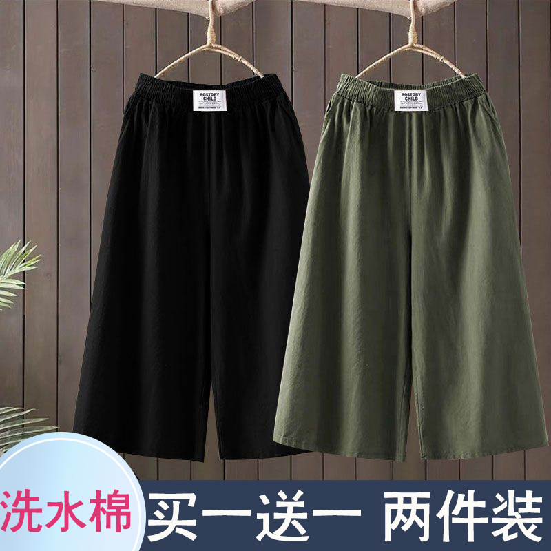 洗水棉裤子女2025夏季薄款阔腿七分裤子女小个子显瘦直筒阔腿裤女