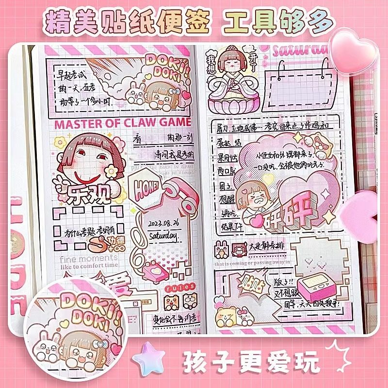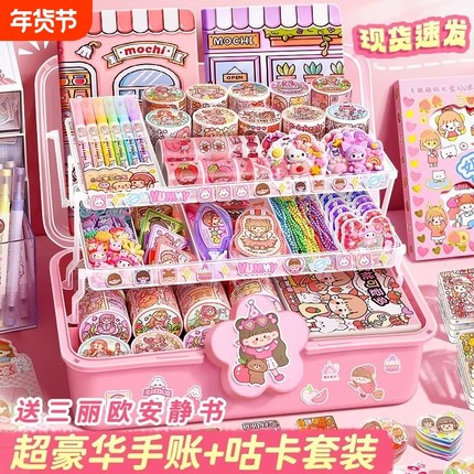 手账套装礼盒手帐咕卡玩具女孩手账本10岁生日礼物儿童女生童大礼包工具全套库卡手杖贴纸麻薯豪华安静奶油胶