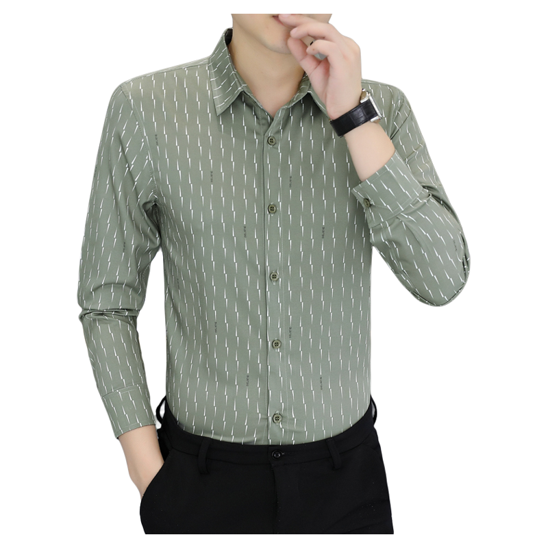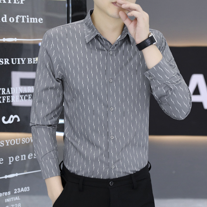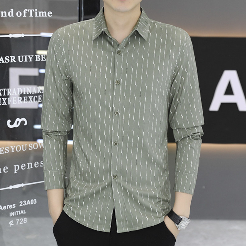 韩版高级感商务男士条纹衬衫免烫春秋季新款休闲商务冰丝白色衬衣