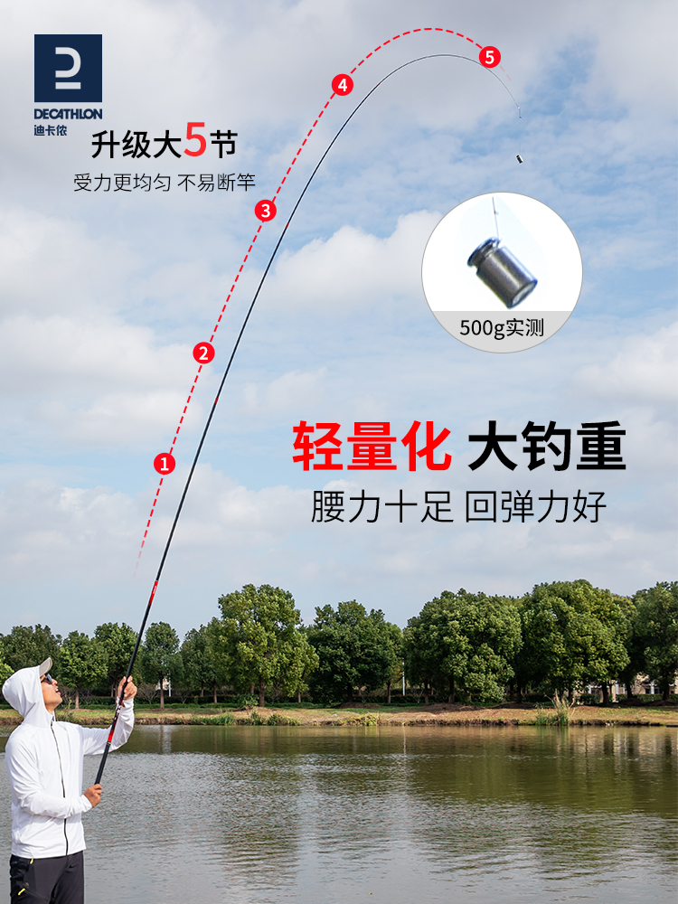 迪卡侬鱼竿鲤悦鱼竿手杆超轻超硬台钓渔具套装28调OVFI