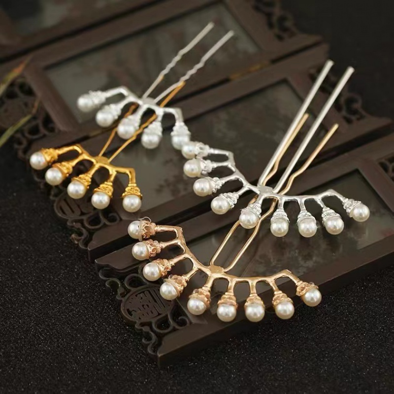 古风发饰珍珠排簪发排汉服配饰五排发钗九排簪子明制头饰排钗发簪
