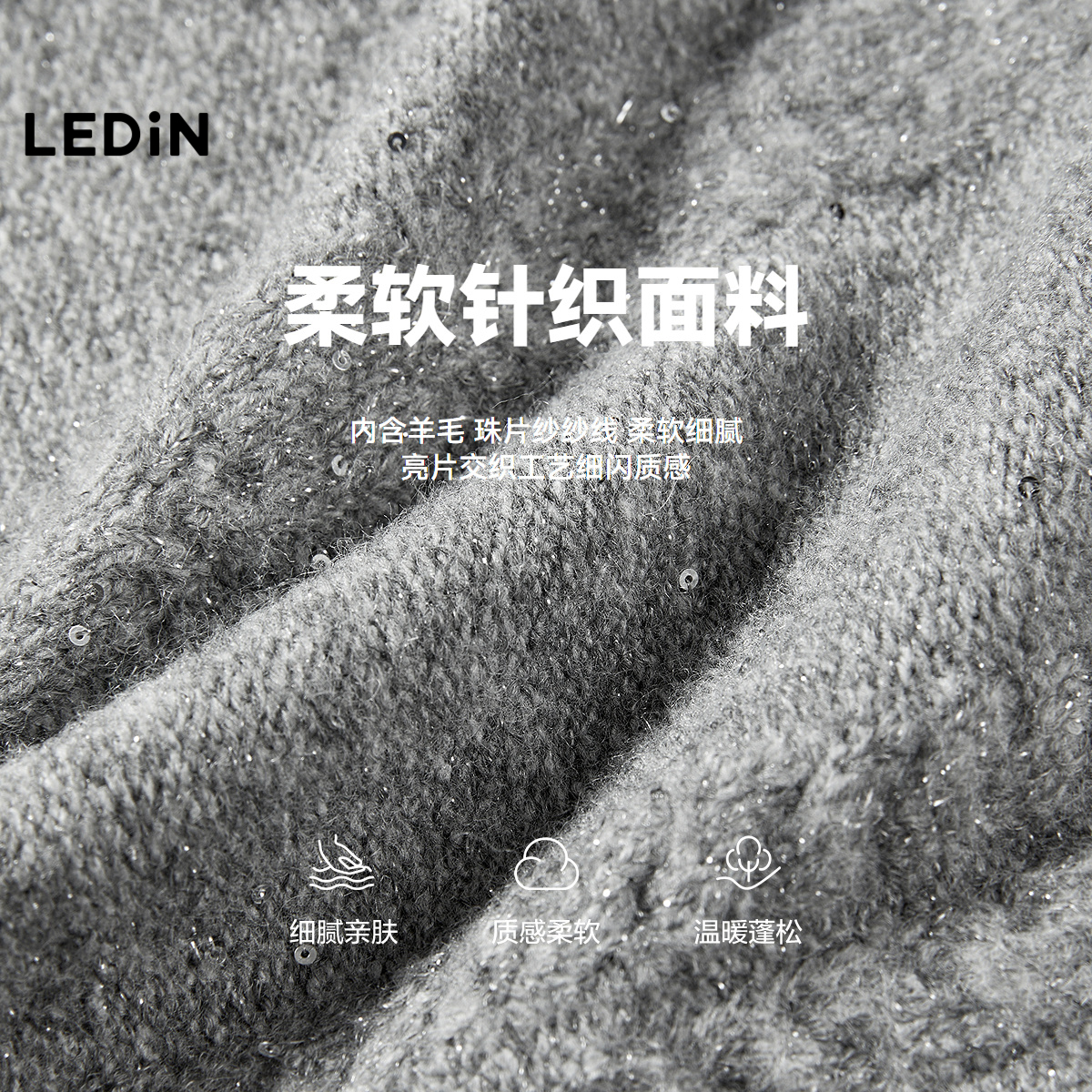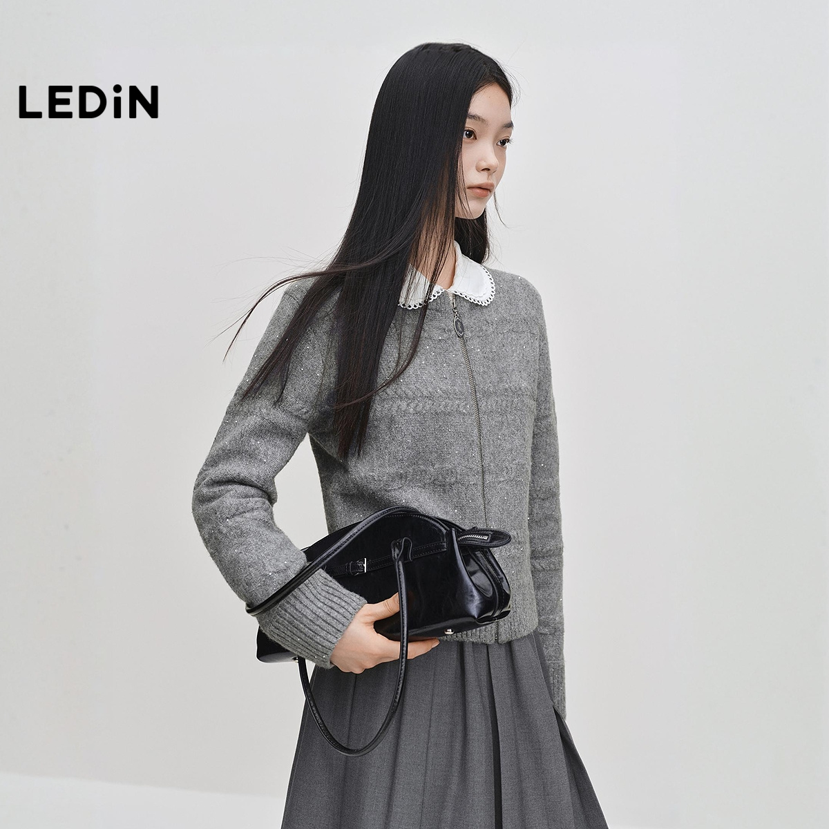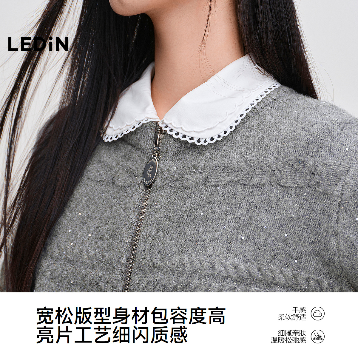 乐町绒感拉链毛衣外套女25年冬季新款灰色宽松亮片氛围感毛针织衫