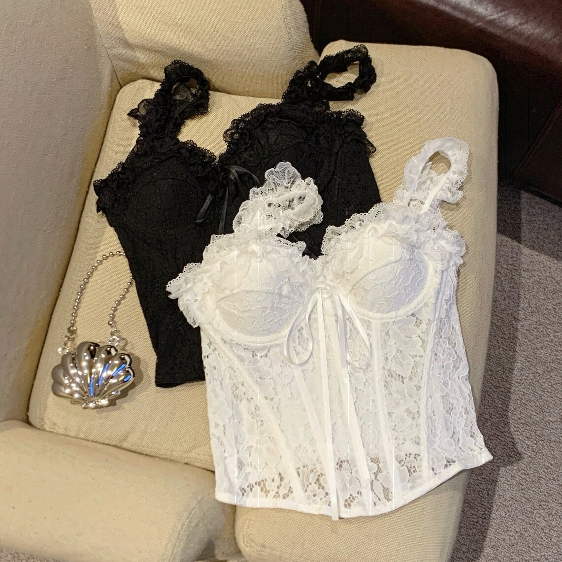 春季矮个子女装150cm显高加小码XXXS带胸垫蕾丝抹胸上衣美背吊带