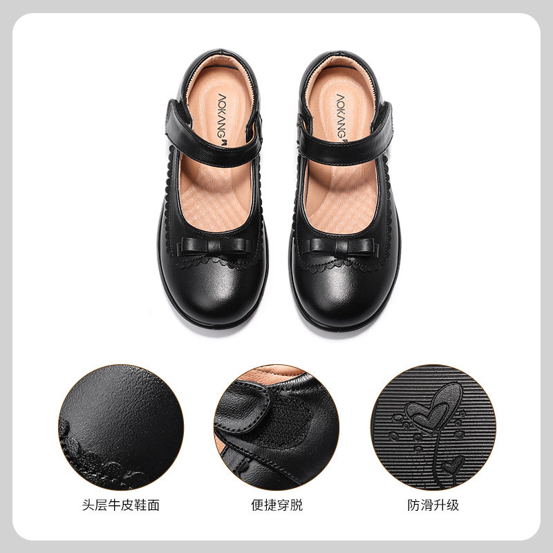 奥康童鞋女童小皮鞋黑色2025新款春秋女孩玛丽珍单鞋小学生公主鞋
