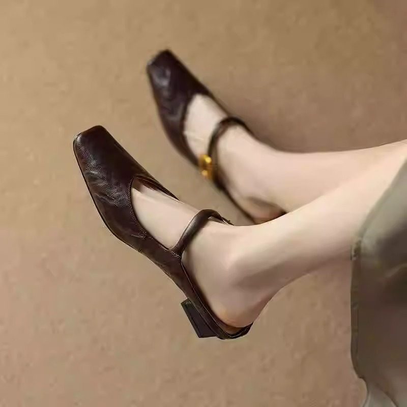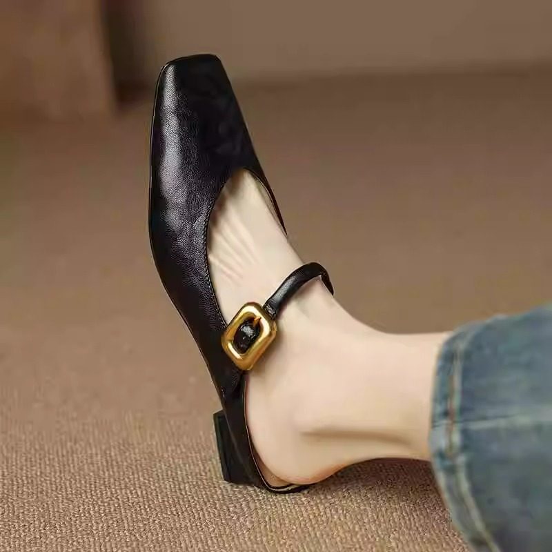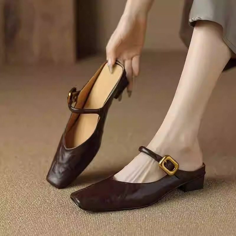 羊皮版~法式复古包头半拖鞋女2025夏季新款一字带外穿玛丽珍凉鞋