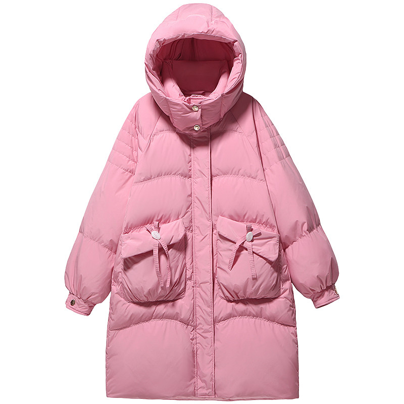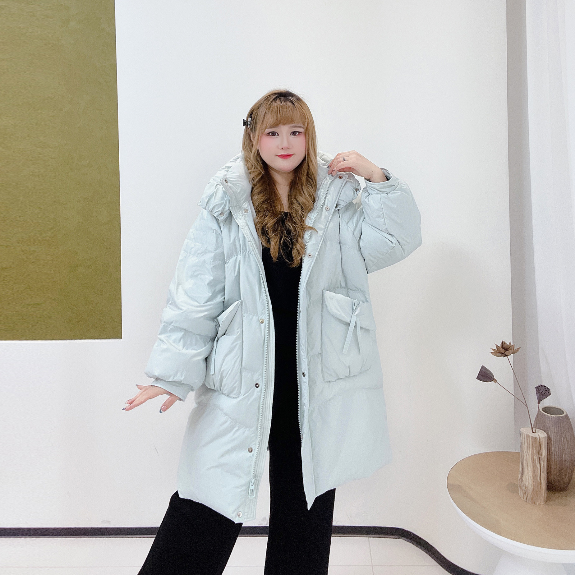 少女减龄大口袋保暖立领外套胖莹莹大码女装冬季中长款连帽羽绒服