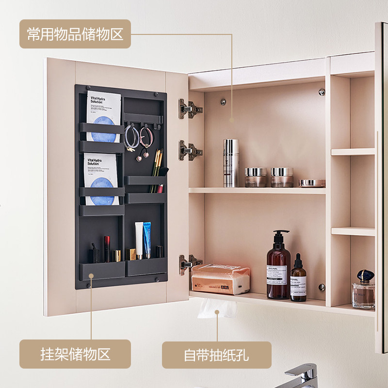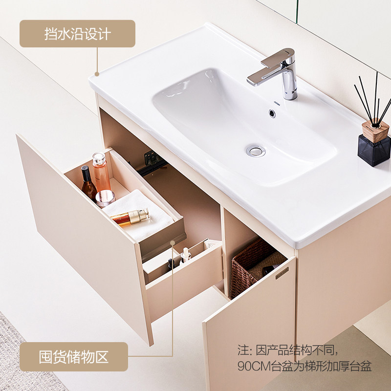 安华奶油风浴室柜组合卫生间感应亮灯美妆收纳洗漱台一体陶瓷盆