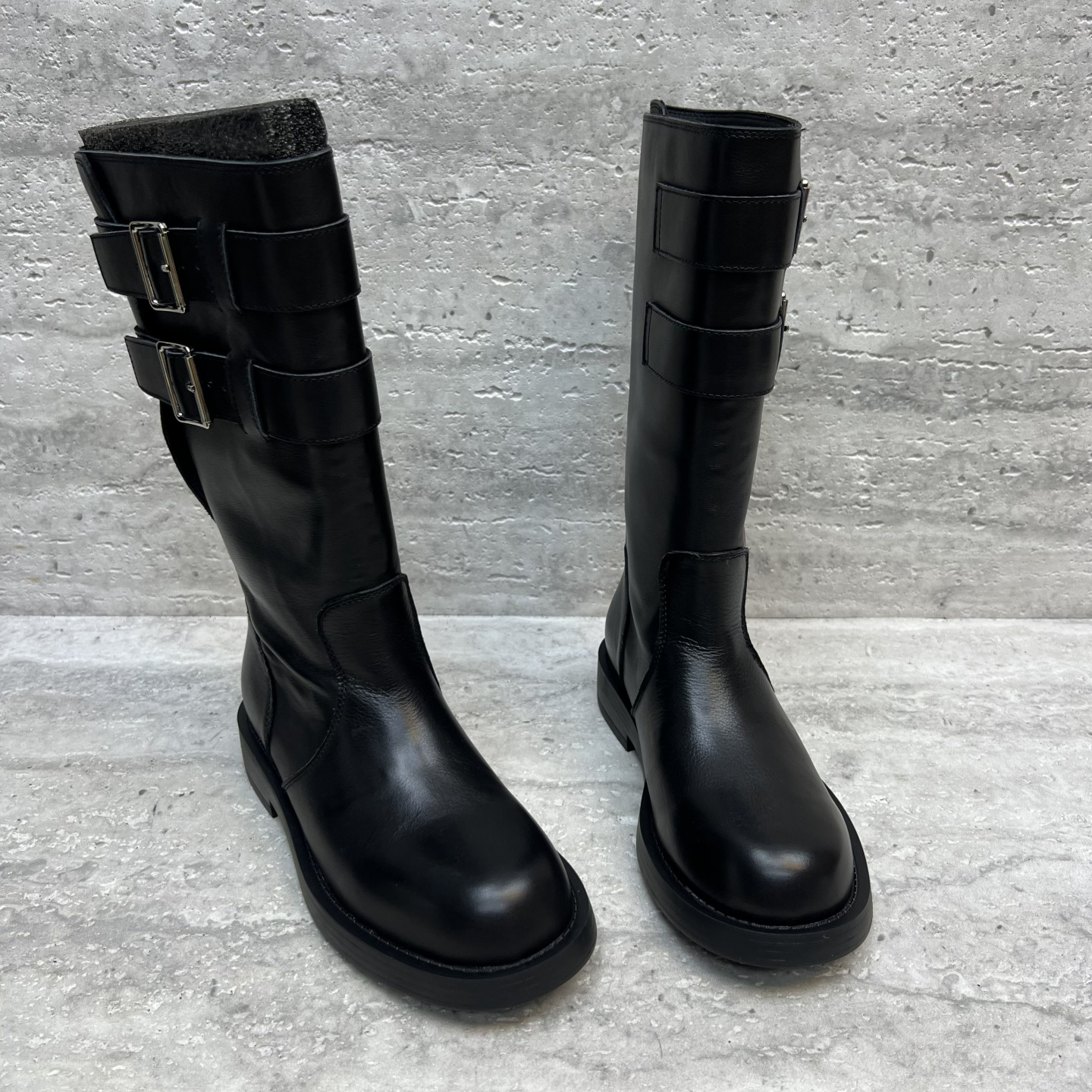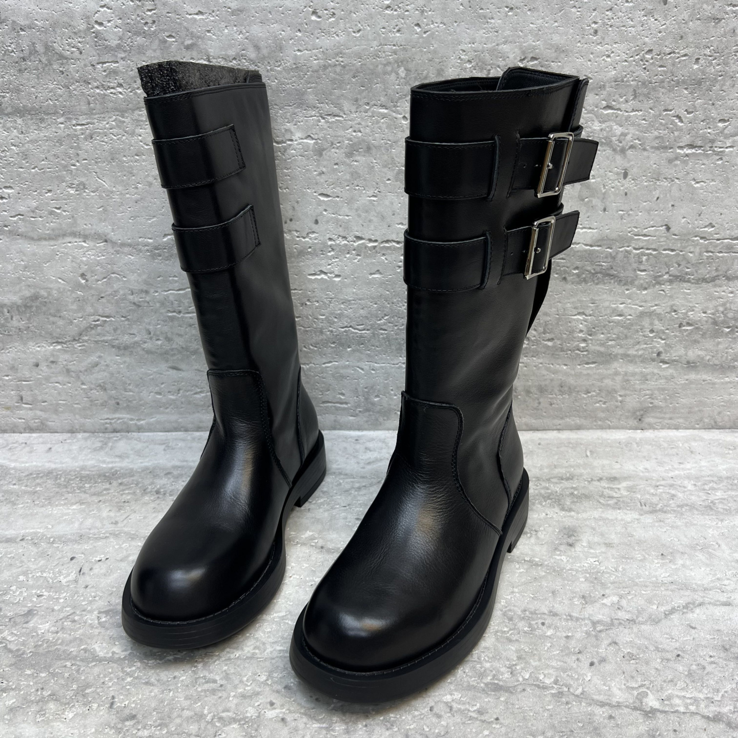 低跟皮带扣骑士靴套筒时尚中筒靴