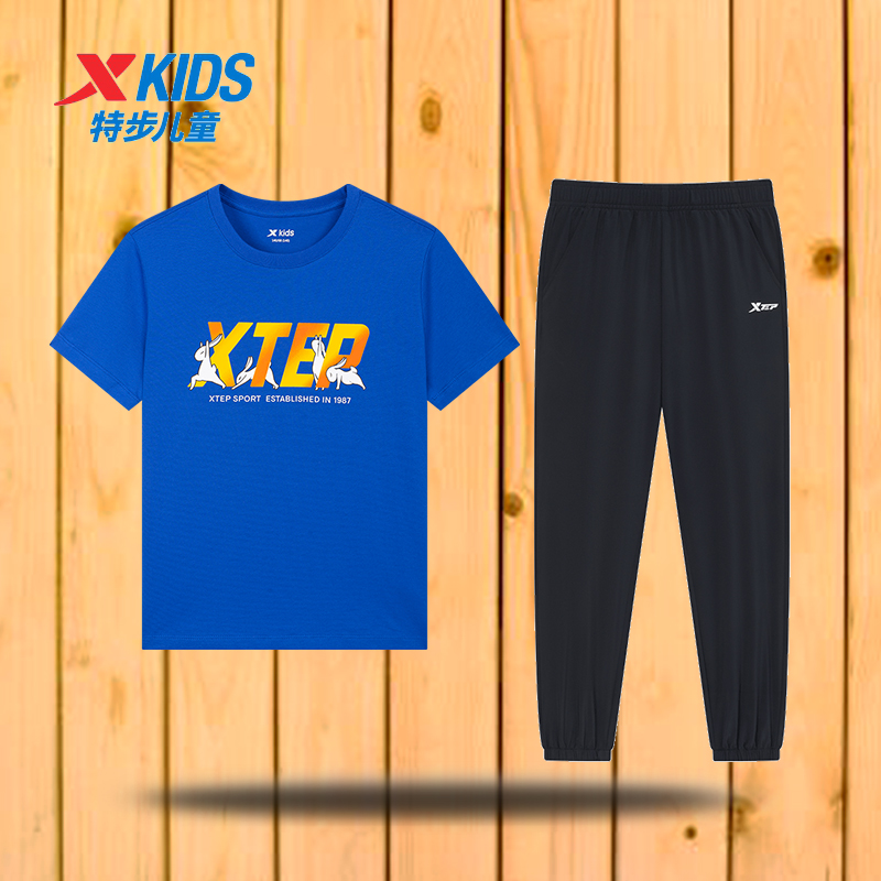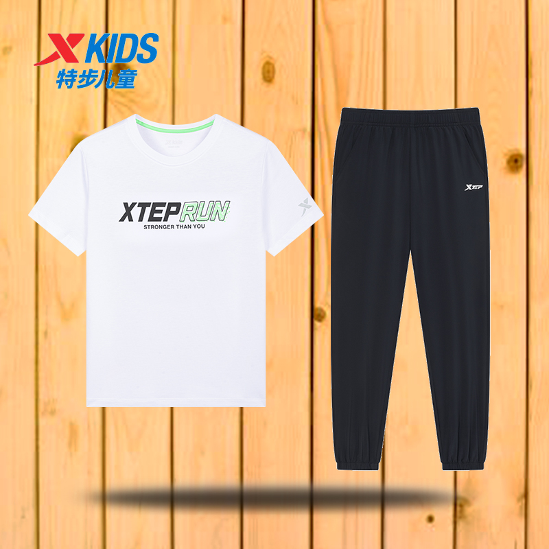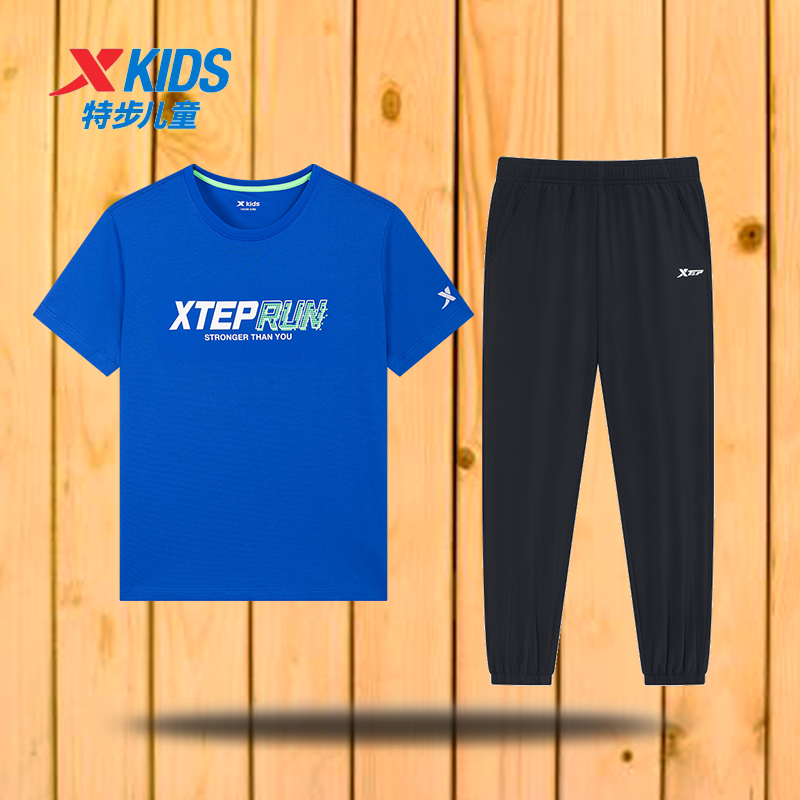 特步童装男童秋季短袖套装2025新款儿童速干T恤大童男孩运动夏装
