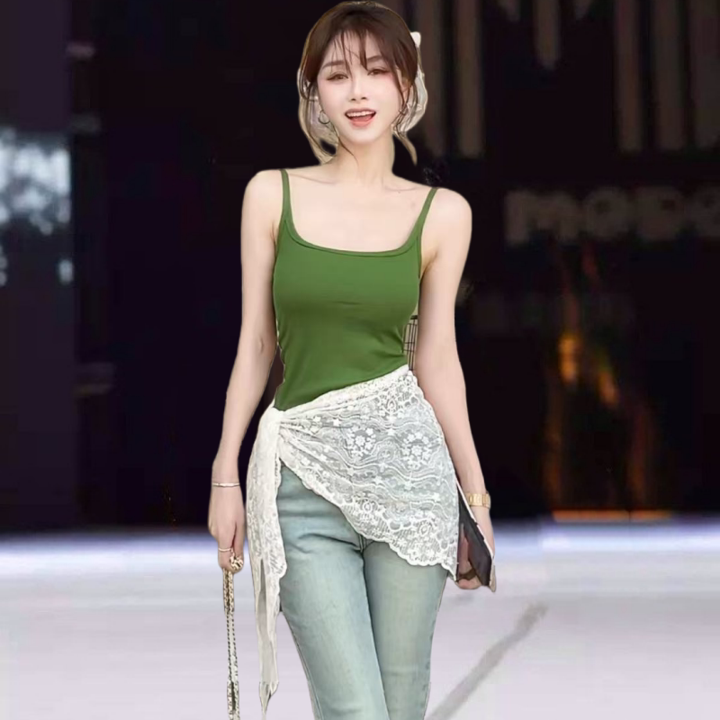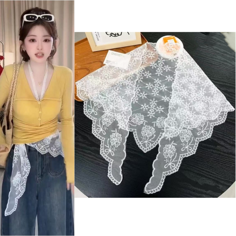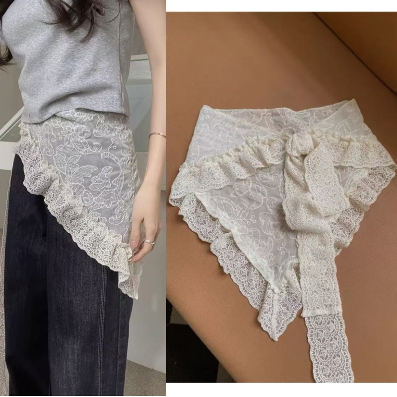 2026春夏新款蕾丝屁帘女装白色高腰半身裙女简约风格A字裙腰巾女