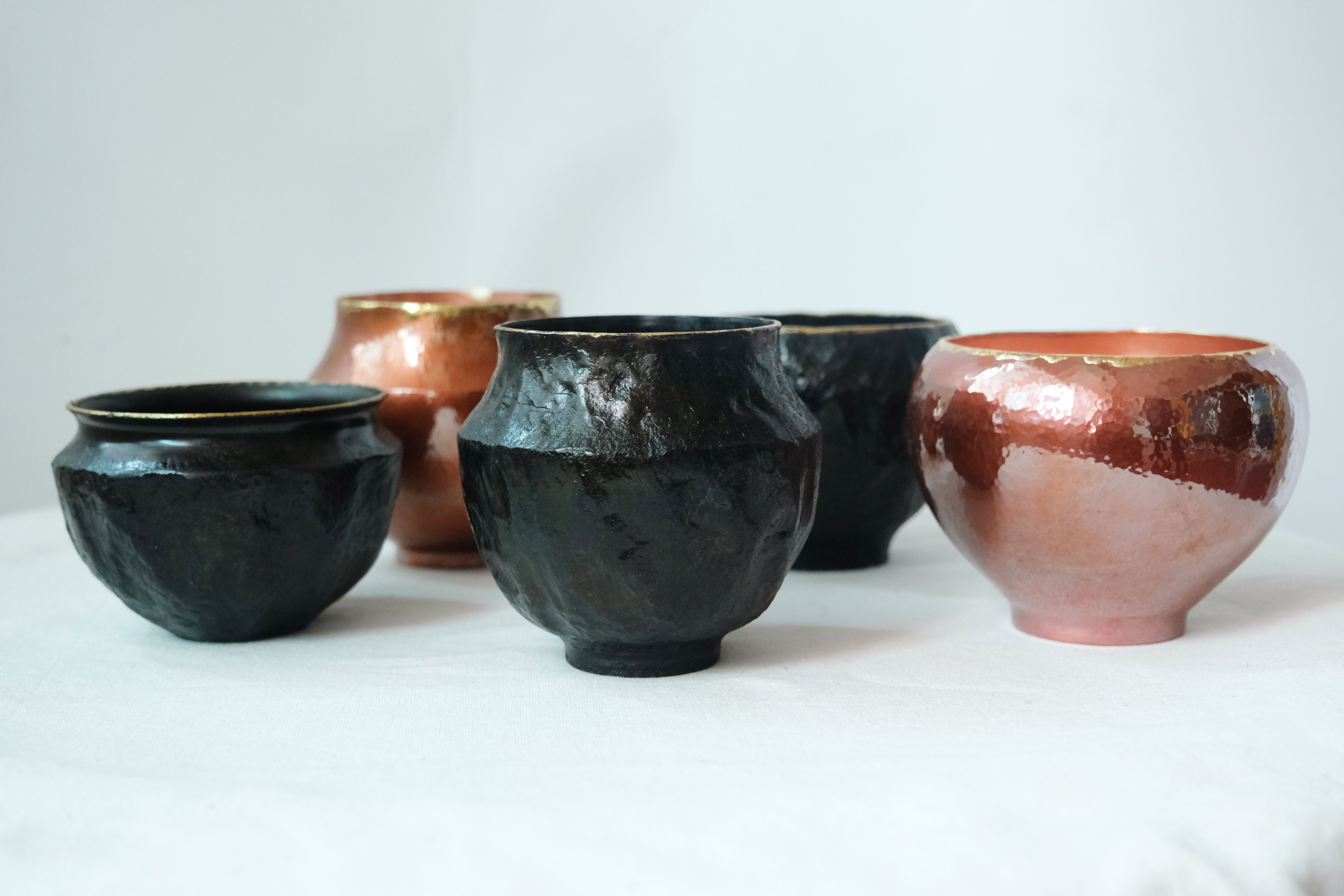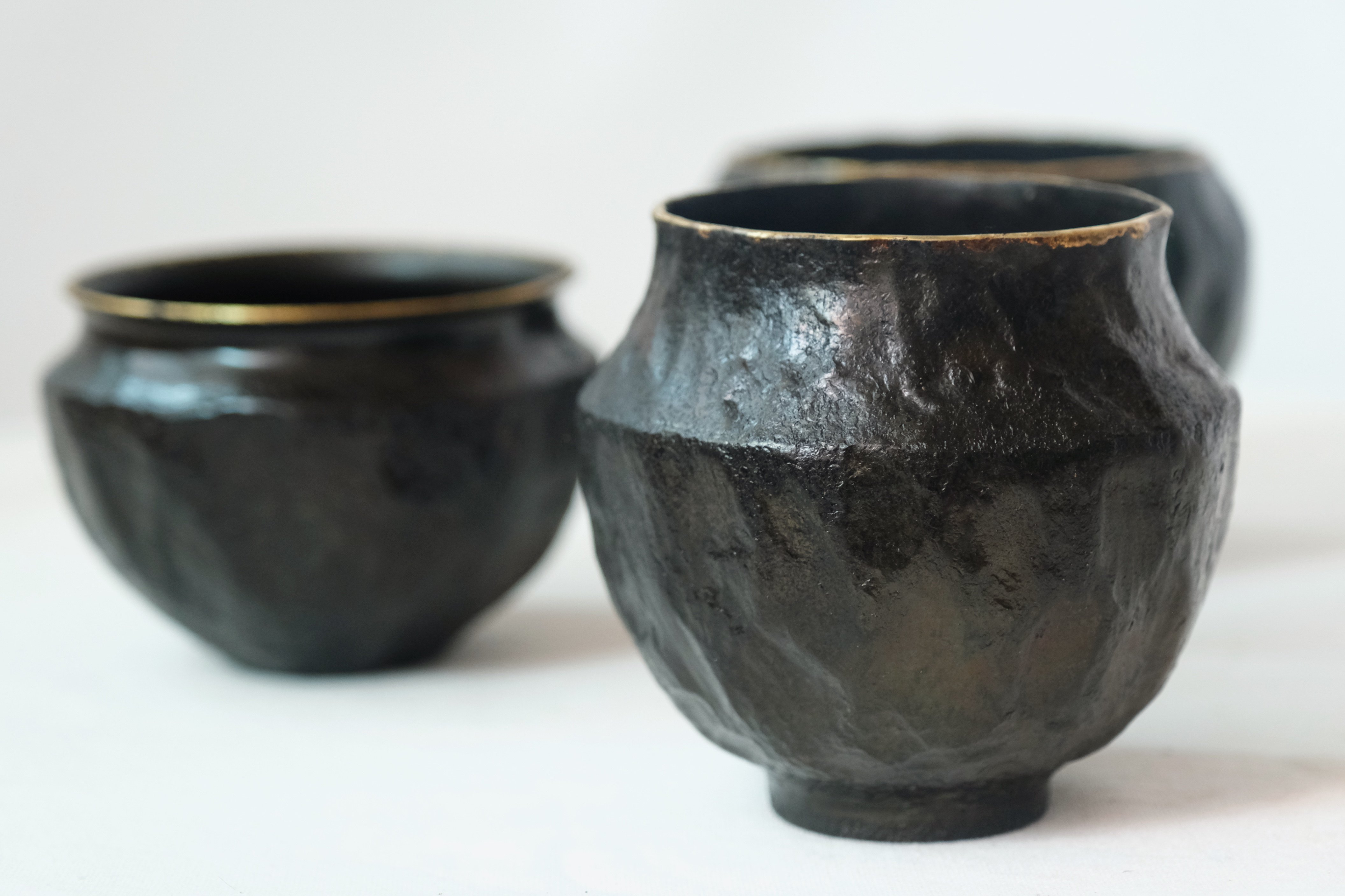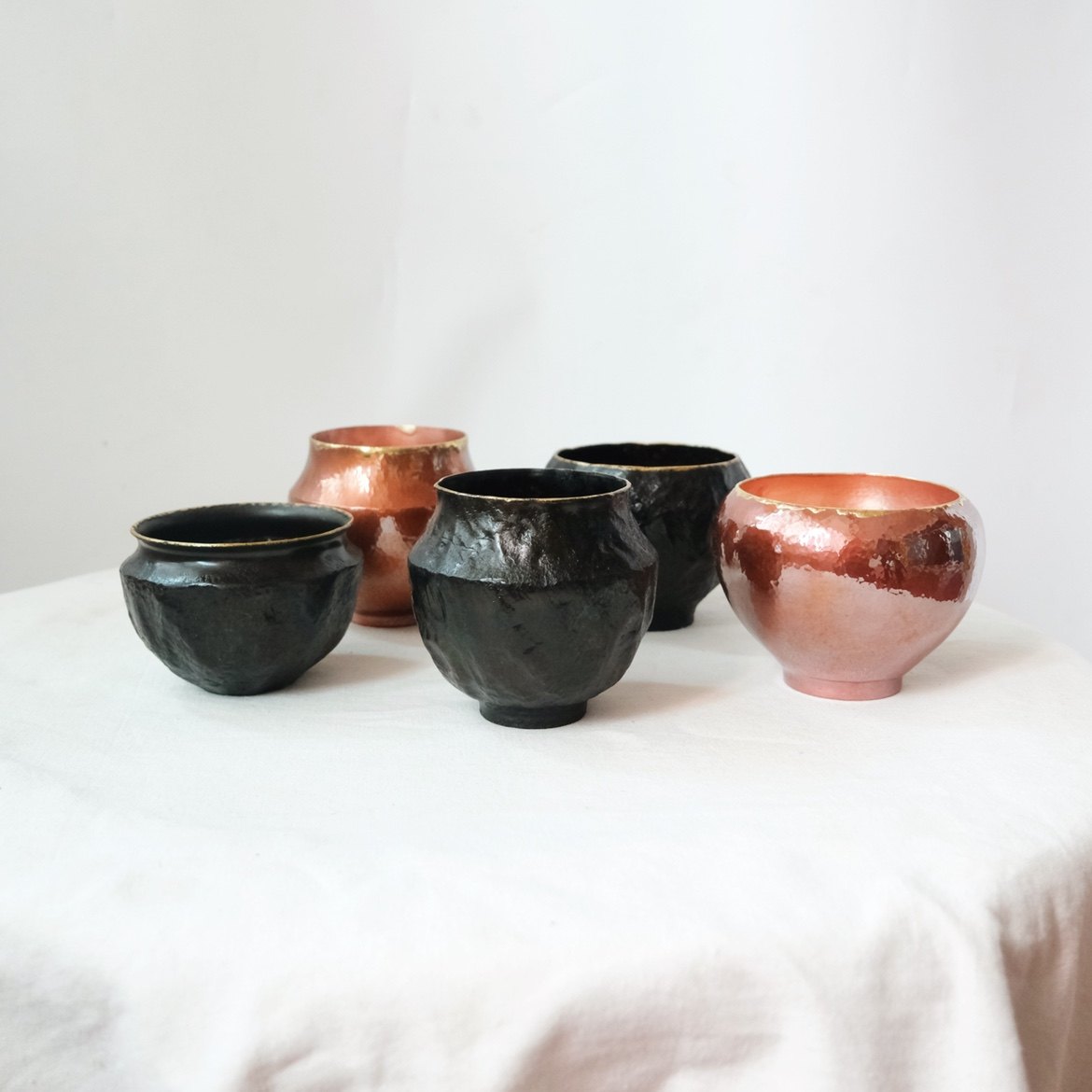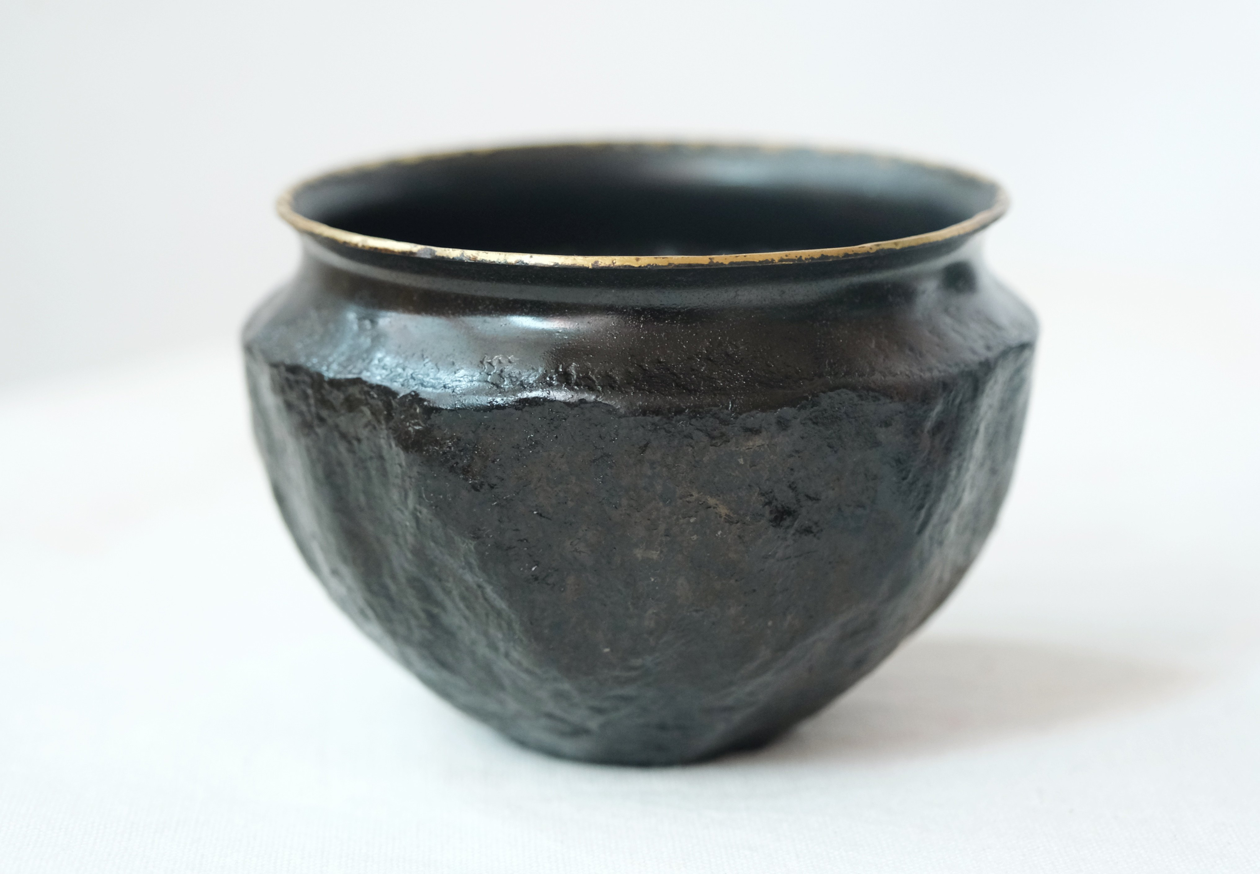 日式手工小水盂 紫铜锤纹烤色茶洗缸 复古铁建水笔洗茶海茶道配件