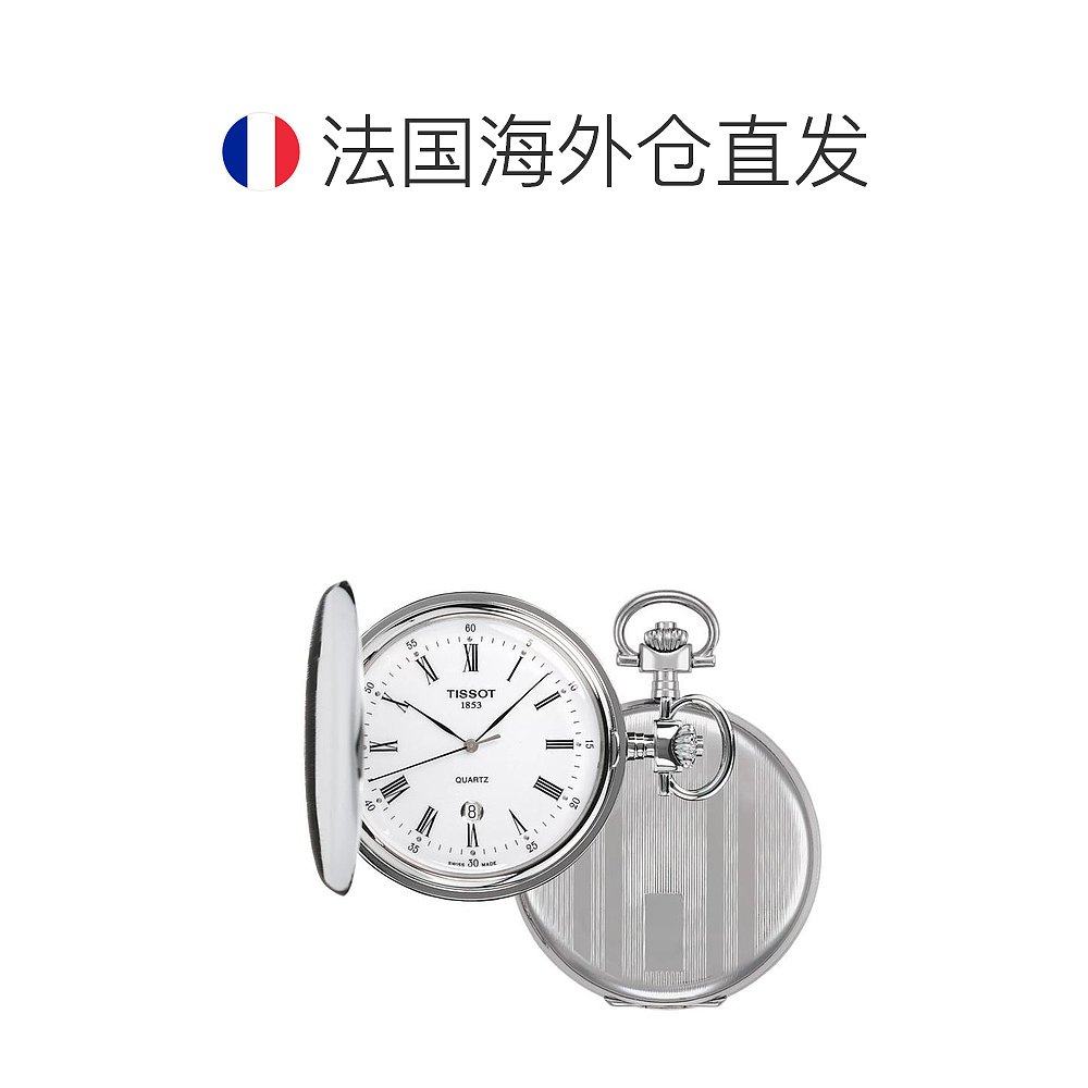 欧洲直邮TISSOT 天梭 男女通用银色精钢表壳石英机芯怀表48.5