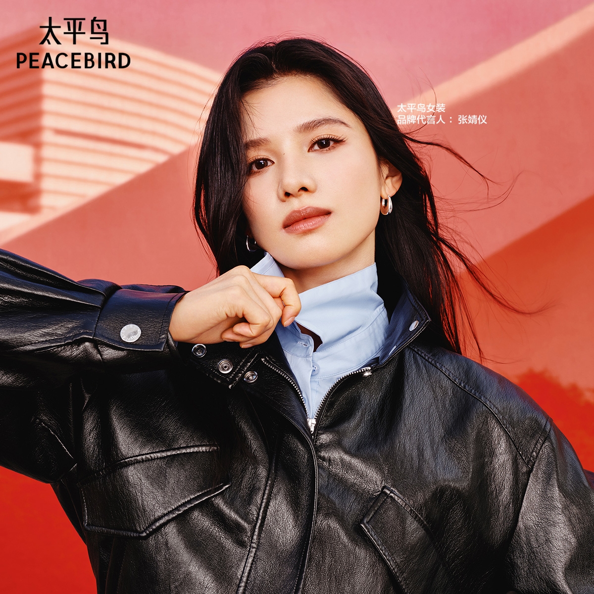 张婧仪同款 太平鸟黑色立领机车风PU皮衣外套女2025新款A1BBF1305