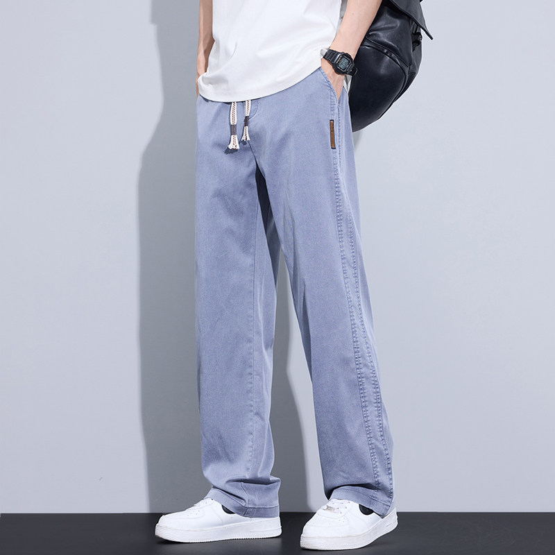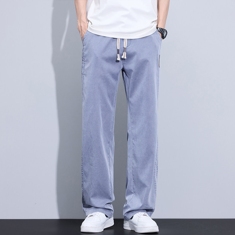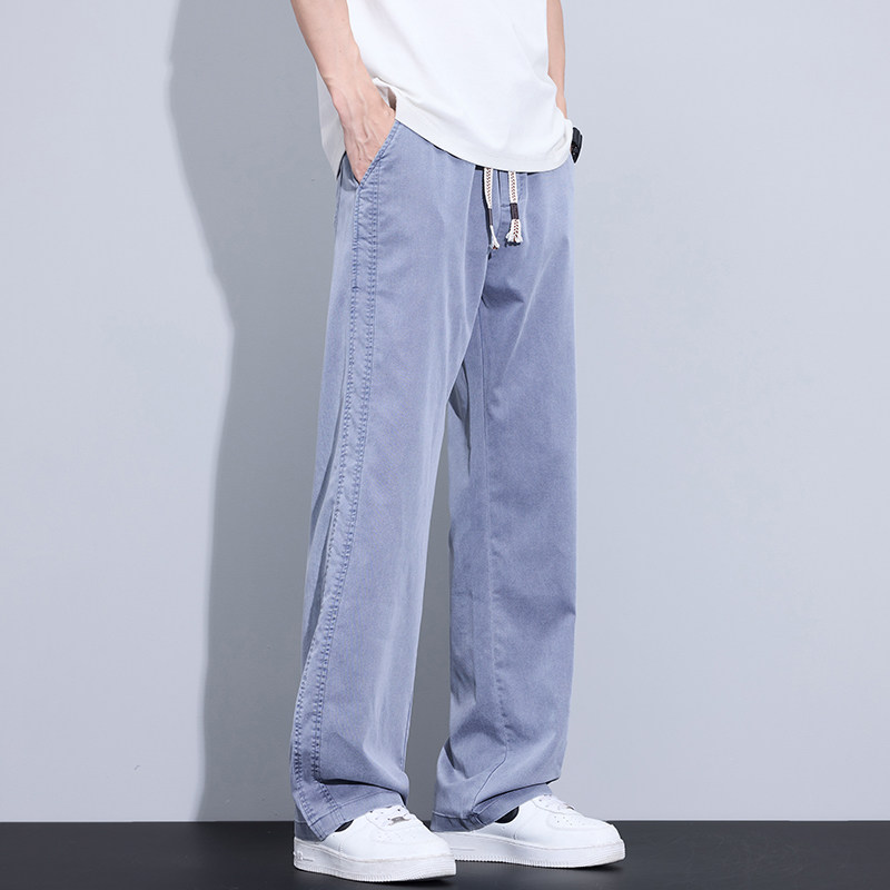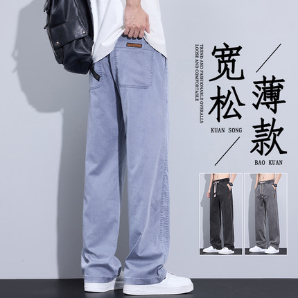 莱赛尔丝休闲长裤子男款夏季超薄款冰丝牛仔裤男士直筒宽松阔腿裤