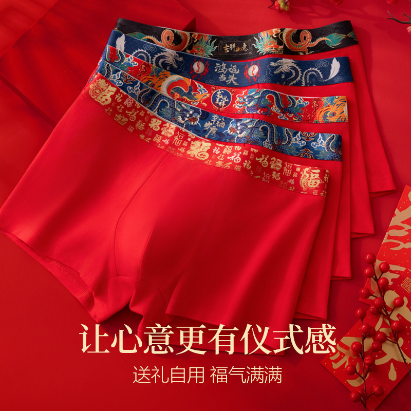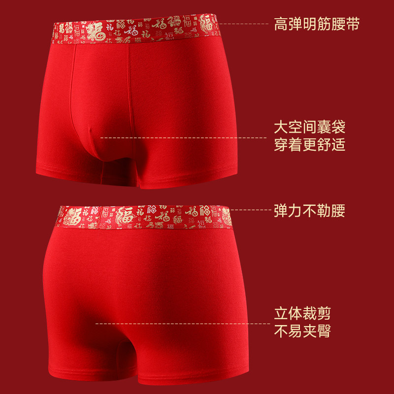 七匹狼2026本命年马年男士内裤纯棉红色裤头结婚四角短裤男平角裤