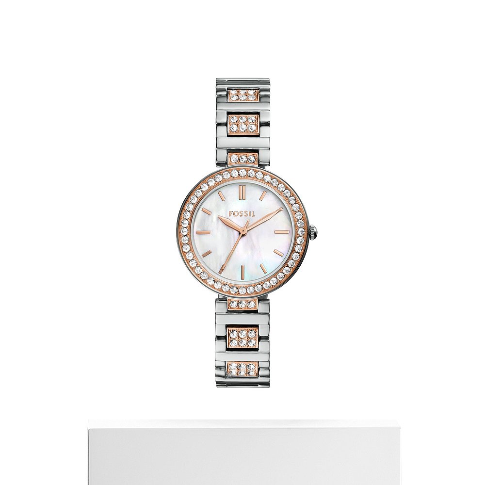 自营 Fossil女式Karli三手银色合金手表-2号 美国奥莱直发化石