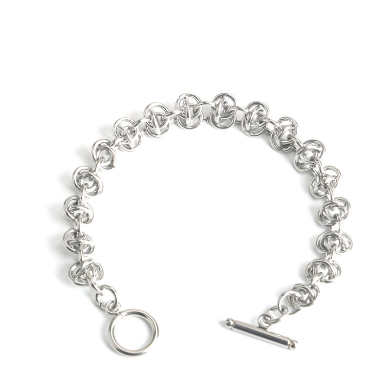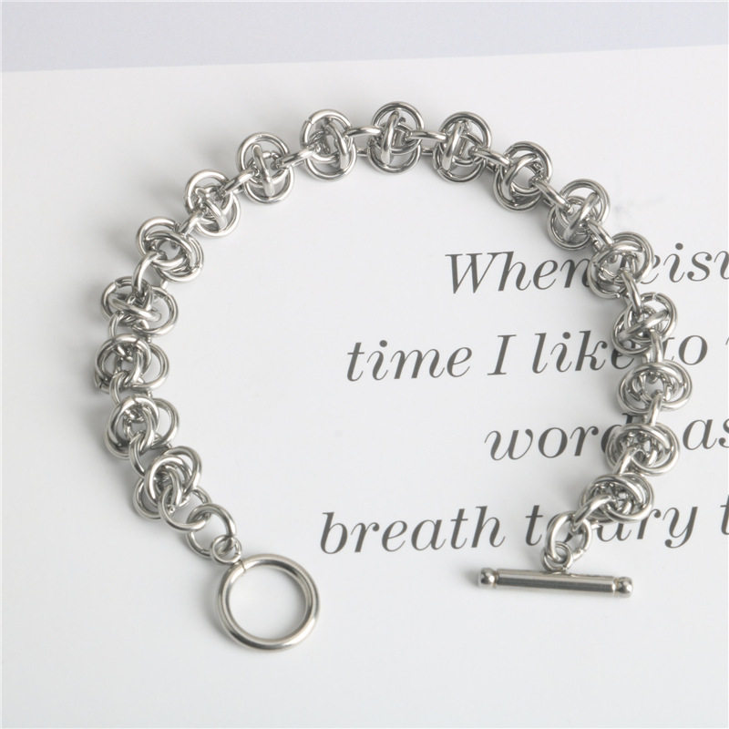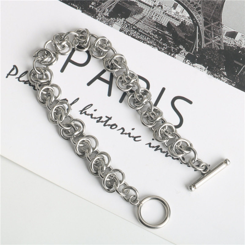 欧美ins风嘻哈个性圆环相扣拼接链条手链设计感钛钢复古手饰男女