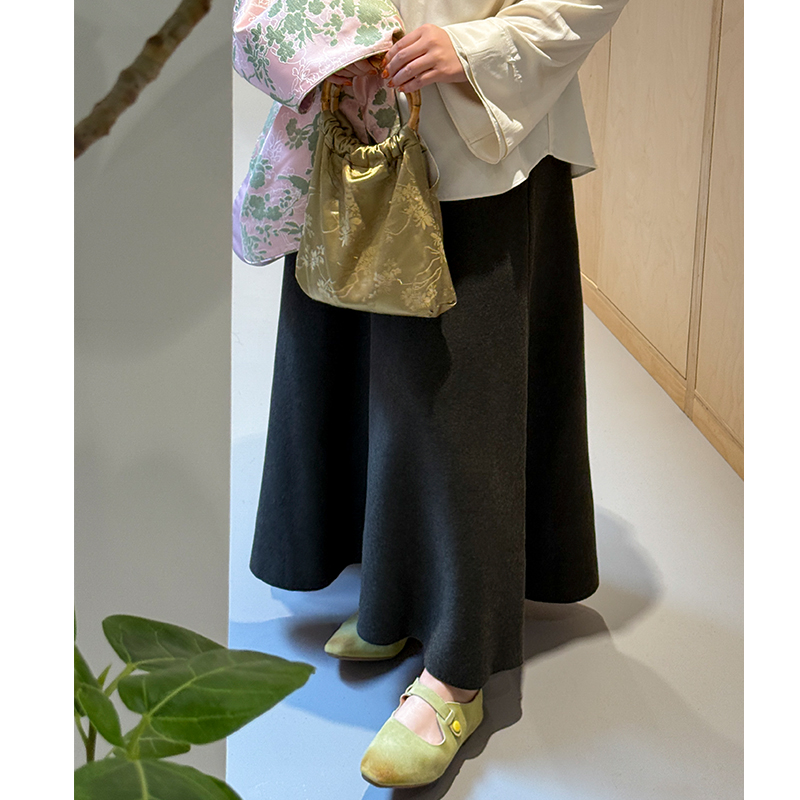 胖mm秋冬毛织伞摆半身裙木子理想大码女装优雅松紧腰长裙子200斤