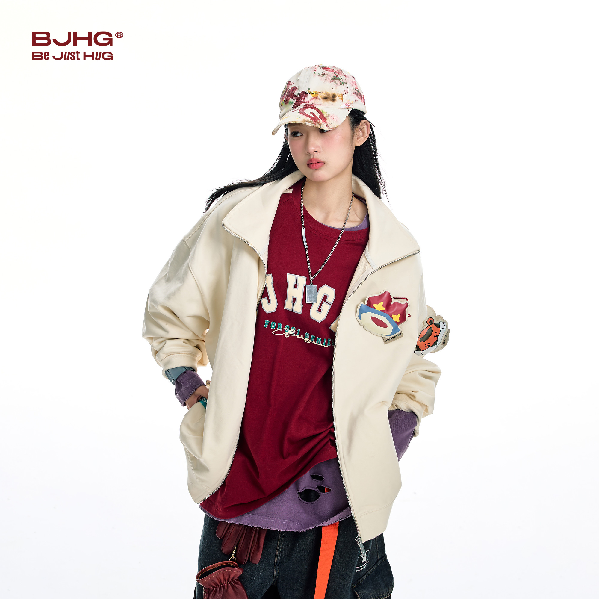 BJHG不计后果贴贴美式夹克外套男款秋季2025新款宽松重磅棒球服女