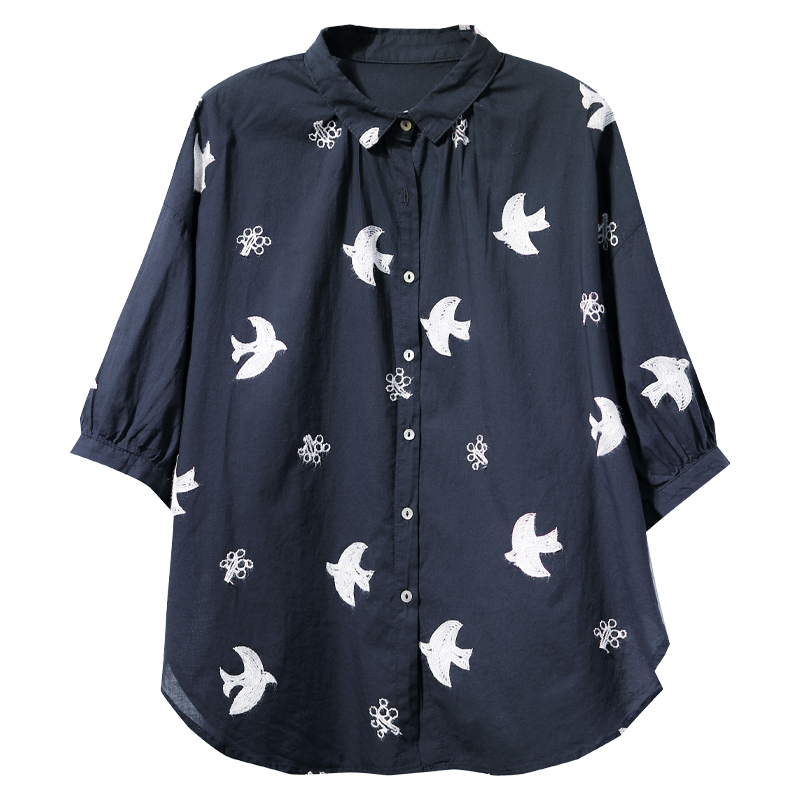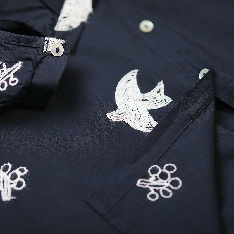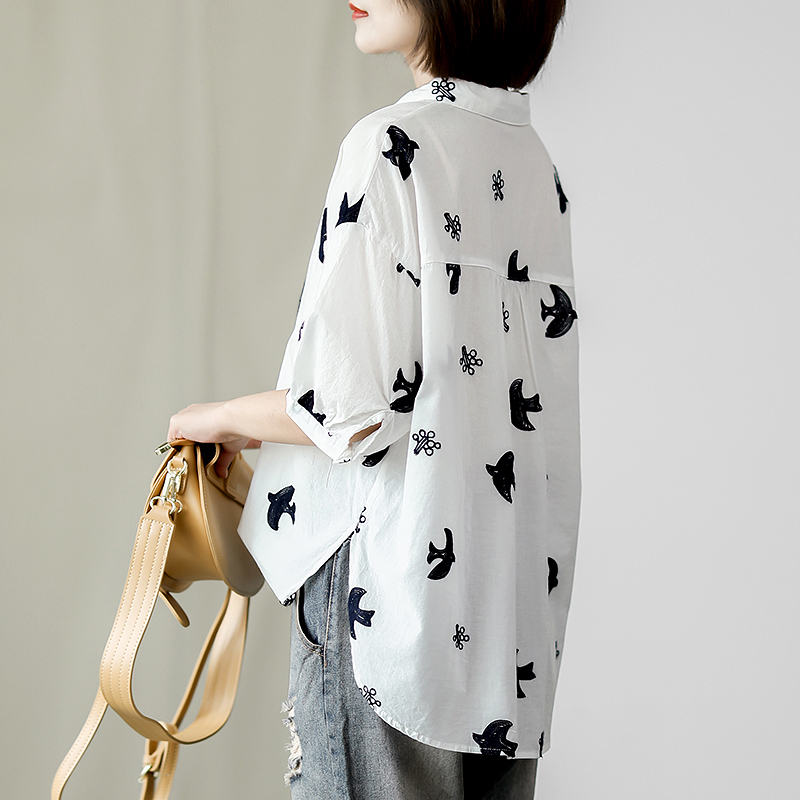 宽松文艺休闲短袖纯棉刺绣白衬衫