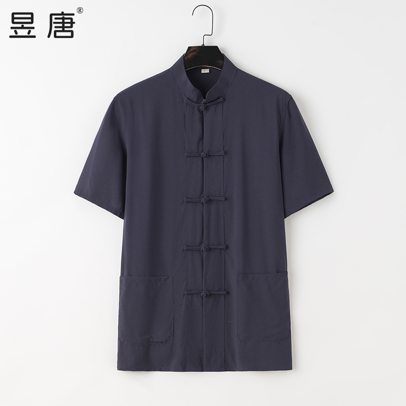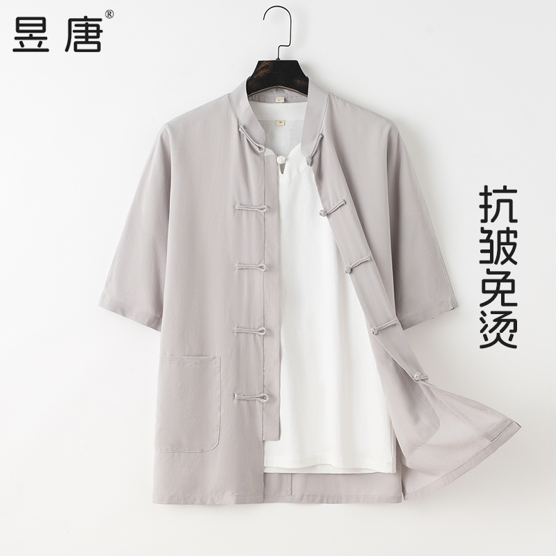 夏季唐装男短袖上衣中国风男装衬衣复古立领休闲盘扣汉服天丝外套